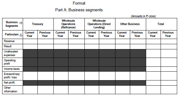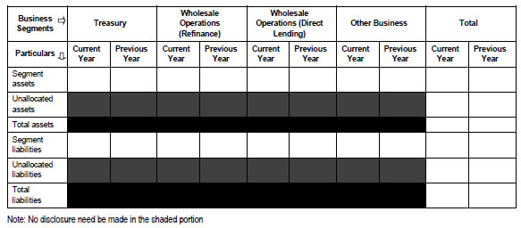 (iv) Movement of provisions for NPAs (Excluding provisions on standard assets) (a) Opening balance (b) Provisions made during the year (c) Write of / write back of excess provisions (d) Closing balance | | | (ii) Non-performing investments | (Amount in ₹ crore) | | Particulars | Current Year | Previous Year | (i) Net NPIs to Net Investments (%) (ii) Movement of NPIs (Gross) (a) Opening balance (b) Additions during the year (c) Reductions during the year (d) Closing balance (iii) Movement of Net NPIs (a) Opening balance (b) Additions during the year (c) Reductions during the year (d) Closing balance (iv) Movement of provisions for NPIs (excluding provisions on standard assets) (a) Opening balance (b) Provisions made during the year (c) Write of / write back of excess provisions (d) Closing balance | | | Note - For reporting non-performing investments, the total investments would exclude the investment that are assigned zero risk weight under the capital adequacy framework. (iii) Non-Performing Assets [3(i)+3(ii)] | (Amount in ₹ crore) | | Particulars | Current Year | Previous Year | (i) Net NPAs to Net Assets (Advances + investments) (%) (ii) Movement of NPAs (Gross Advances + Gross investments) (a) Opening balance (b) Additions during the year (c) Reductions during the year (d) Closing balance (iii) Movement of Net NPAs (a) Opening balance (b) Additions during the year (c) Reductions during the year (d) Closing balance (iv) Movement of provisions for NPAs (Excluding provisions on standard assets) (a) Opening balance (b) Provisions made during the year (c)Write of / write back of excess provisions (d)Closing balance | | | (iv) Particulars of resolution plan and restructuring (a) An AIFI covered by the ‘Reserve Bank of India (All India Financial Institutions – Resolution of Stressed Assets) Directions, 2025, shall make appropriate disclosures in its financial statements relating to resolution plans implemented. As per the referenced circular, acquisition of shares due to conversion of debt to equity during a restructuring process shall be exempted from regulatory ceilings / restrictions on capital market exposures, investment in para-banking activities and intra-group exposure. However, details of the same shall be disclosed by the AIFI in the notes to accounts to its Annual Financial Statements. (v) Disclosure related to Project Finance A lender shall make appropriate disclosures related to project finance as below: | Sr. No. | Item Description | Number of accounts | Total outstanding (in ₹ crore) | | 1 | Projects under implementation accounts at the beginning of the quarter. | | | | 2 | Projects under implementation accounts sanctioned during the quarter. | | | | 3 | Projects under implementation accounts where DCCO has been achieved during the quarter | | | | 4 | Projects under implementation accounts at the end of the quarter. (1+2-3) | | | | 5 | Out of ‘4’ – accounts in respect of which resolution process involving extension in original/extended DCCO, as the case may be, has been invoked. | | | | 5.1 | Out of ‘5’ – accounts in respect of which Resolution plan has been implemented. | | | | 5.2 | Out of ‘5’ – accounts in respect of which Resolution plan is under implementation. | | | | 5.3 | Out of ‘5’ – accounts in respect of which Resolution plan has failed. | | | | 6 | Out of ‘5’, accounts in respect of which resolution process involving extension in original/extended DCCO, as the case may be, has been invoked due to change in scope and size of the project. | | | | 7 | Out of ‘5’, account in respect of which cost overrun associated with extension in original/extended DCCO, as the case may be, was funded | | | | 7.1 | Out of ‘7’, accounts where SBCF was sanctioned during financial closure and renewed continuously | | | | 7.2 | Out of ‘7’, accounts where SBCF was not pre-sanctioned or renewed continuously | | | | 8 | Out of ‘4’ – accounts in respect of which resolution process not involving extension in original/extended DCCO, as the case may be, has been invoked. | | | | 8.1 | Out of ‘8’ – accounts in respect of which Resolution plan has been implemented. | | | | 8.2 | Out of ‘8’ – accounts in respect of which Resolution plan is under implementation. | | | | 8.3 | Out of ‘8’ – accounts in respect of which Resolution plan has failed. | | | (vi) Movement of non-performing assets | (Amount in ₹ crore) | | Particulars | Current year | Previous year | | Gross NPAs* as on opening date of accounting period (Opening Balance) | | | | Additions (Fresh NPAs) during the year | | | | Sub-total (A) | | | | Less: | | | | (i) Upgradations | | | | (ii)Recoveries (excluding recoveries made from upgraded accounts) | | | | (iii) Technical / Prudential** Write offs | | | | (iv) Write offs other than those under (iii) above | | | | Sub-total (B) | | | | Gross NPAs as on March 31 of following year (closing balance) (A-B) | | | Note – *Gross NPAs as specified in Reserve Bank of India (All India Financial Institutions – Income Recognition, Asset Classification and Provisioning) Directions, 2025 (vii) Write-offs and recoveries | (Amount in ₹ crore) | | Particulars | Current year | Previous year | | Opening balance of Technical / Prudential written off accounts as at April 1 | | | | Add: Technical / Prudential write offs during the year | | | | Subtotal (A) | | | | Less: Recoveries made from previously technical / prudential written off accounts during the year (B) | | | | Closing balance as at March 31 (A-B) | | | (viii) Overseas Assets, NPAs and Revenue | (Amount in ₹ crore) | | Particulars | Current year | Previous year | | Total Assets | | | | Total NPAs | | | | Total Revenue | | | (ix) Depreciation and provisions on investments | (Amount in ₹ crore) | | Particulars | Current Year | Previous Year | (1) Investments (i) Gross Investments (a) In India (b) Outside India (ii) Provisions for Depreciation (a) In India (b) Outside