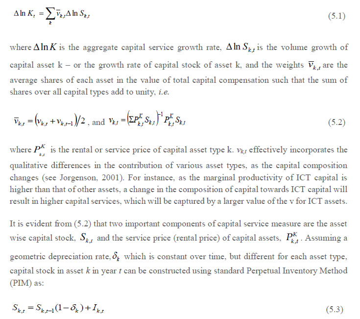 Labour quality Index is now based on five education categories, and is not a Grand labour composition Index based on all the labour characteristics of age, gender and education. In the previous version, labour quality index was based on mainly three education categories. 4. Capital Input -