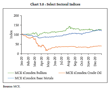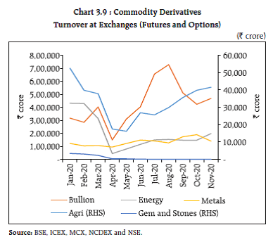 | Table 3.4 : Sectoral Distribution of CIRPs as on September 30, 2020 | | Sector | No. of CIRPs | | Admitted | Closure by | Ongoing | | Appeal/ Review/ Settled | Withdrawal under Section 12 A | Approval of Resolution Plan | Commencement of Liquidation | Total | | Manufacturing | 1639 | 163 | 118 | 140 | 449 | 870 | 769 | | Food, Beverages & Tobacco Products | 208 | 17 | 10 | 15 | 58 | 100 | 108 | | Chemicals & Chemical Products | 164 | 16 | 15 | 19 | 38 | 88 | 76 | | Electrical Machinery & Apparatus | 118 | 14 | 4 | 5 | 45 | 68 | 50 | | Fabricated Metal Products | 92 | 8 | 11 | 4 | 28 | 51 | 41 | | Machinery & Equipment | 183 | 25 | 20 | 10 | 45 | 100 | 83 | | Textiles, Leather & Apparel Products | 279 | 27 | 18 | 19 | 98 | 162 | 117 | | Wood, Rubber, Plastic & Paper Products | 195 | 17 | 18 | 20 | 38 | 93 | 102 | | Basic Metals | 286 | 26 | 11 | 35 | 73 | 145 | 141 | | Others | 114 | 13 | 11 | 13 | 26 | 63 | 51 | | Real Estate, Renting & Business Activities | 793 | 123 | 75 | 34 | 166 | 398 | 395 | | Real Estate Activities | 188 | 36 | 16 | 5 | 18 | 75 | 113 | | Computer and related activities | 115 | 15 | 12 | 1 | 29 | 57 | 58 | | Research and Development | 5 | 1 | 1 | 1 | 0 | 3 | 2 | | Other Business Activities | 485 | 71 | 46 | 27 | 119 | 263 | 222 | | Construction | 428 | 70 | 36 | 26 | 76 | 208 | 220 | | Wholesale & Retail Trade | 398 | 39 | 22 | 16 | 127 | 204 | 194 | | Hotels & Restaurants | 93 | 15 | 9 | 10 | 20 | 54 | 39 | | Electricity & Others | 124 | 11 | 3 | 10 | 22 | 46 | 78 | | Transport, Storage &Communications | 119 | 15 | 7 | 9 | 40 | 71 | 48 | | Others | 414 | 37 | 21 | 32 | 125 | 215 | 199 | | Total | 4008 | 473 | 291 | 277 | 1025 | 2066 | 1942 | Note: The distribution is based on the CIN of corporate debtors and as per National Industrial Classification (NIC 2004). Source: Insolvency and Bankruptcy Board of India (IBBI). | 3.45 Of the CIRPs initiated, 277 ended in resolutions up to end-September 2020. Realisation by creditors under resolution plans in comparison to liquidation value stood at 185.2 per cent, while the realisation was 43.6 per cent in comparison to their claims (Table 3.5). Significantly, out of the above 277 resolutions, 91 corporate debtors were under Board for Industrial and Financial Reconstruction (BIFR) processes or defunct. The CIRPs which yielded resolution plans by the end of September 2020 took an average of 384 days (after excluding the time excluded by the Adjudicating Authority) for conclusion of the process. | Table 3.5 : Outcome of CIRPs initiated Stakeholder-wise, as on September 30, 2020 | | Outcome | Description | Financial Creditor | Operational Creditor | Corporate Debtor | Total | | Status of CIRPs | Closure by Appeal/Review/Settled | 124 | 343 | 6 | 473 | | Closure by Withdrawal u/s 12A | 88 | 198 | 5 | 291 | | Closure by Approval of Resolution Plan | 157 | 80 | 40 | 277 | | Closure by Commencement of Liquidation | 444 | 438 | 143 | 1025 | | Ongoing | 917 | 958 | 67 | 1942 | | Total | 1730 | 2017 | 261 | 4008 | | CIRPs yielding Resolution Plans | Realisation by FCs (% of Liquidation Value) | 192.09 | 112.40 | 142.77 | 185.15 | | Realisation by FCs as % of their Claims | 46.84 | 21.80 | 25.30 | 43.56 | | Average time taken for Closure of CIRP | 444 | 406 | 443 | 433 | | CIRPs yielding Liquidations | Liquidation Value as % of Claims | 6.35 | 9.19 | 9.89 | 7.20 | | Average time taken for Closure of CIRP | 336 | 304 | 306 | 318 | | Source: IBBI. | 3.46 Out of the CIRPs closed, nearly half yielded orders for liquidation. In 73.5 per cent of these cases (751 out of 1022 for which data is available), the corporate debtors were earlier with BIFR and / or defunct (Table 3.6) and the economic value in most cases had already eroded before they were admitted into CIRP. These corporate debtors had assets, on average, valued at less than five per cent of the outstanding debt amount. III.4.11 Mutual Funds 3.47 During the first half of 2020-21, net inflow of ₹1.5 lakh crore into mutual fund schemes was much higher than that of ₹0.6 lakh crore during the same period in the previous year. Income/debt-oriented schemes attracted the major share of the inflows (₹1.2 lakh crore) whereas growth/equity-oriented schemes accounted for a relatively meagre amount (₹2,496 crore). All other schemes together recorded inflows of ₹0.3 lakh crore. | Table 3.6 : CIRPs Ending with Orders for Liquidation till September 30, 2020 | | State of Corporate Debt-or at the Commencement of CIRP | No. of CIRPs initiated by | | Financial creditor | Operational Creditor | Corporate Debtor | Total | | Either in BIFR or Non-functional or both | 304 | 337 | 110 | 751 | | Resolution Value > Liquidation Value | 67 | 35 | 26 | 128 | | Resolution Value < Liquidation Value* | 374 | 404 | 116 | 894 | *: Includes cases where no resolution plans were received and cases where liquidation value is zero or not estimated. Note: 1. There were 57 CIRPs, where corporate debtors were in BIFR or non-functional but had resolution value higher than liquidation value. 2. Data of 3 CIRPs is awaited. Source: IBBI. | 3.48 The mutual fund industry’s assets under management (AUM) increased by 10.9 per cent (y-o-y) at the end of November 2020 (Chart 3.1). 3.49 Systematic investment plans (SIPs) continued to remain a favoured choice for investors. During April–September 2020, the number of folios of SIPs increased by 22 lakh (Table 3.7). | Table 3.7: SIPs in 2020-21 (April 01, 2020 to September 30, 2020) | | Existing at the beginning of the period (excluding STP) | Registered during the period | Matured during the period | Terminated prematurely during the period | Closing no. of SIPs at end of period | SIP AUM at the beginning of the period | SIP AUM at the end of the period | | (Number in lakhs) | (in ₹ crore) | | 315 | 72 | 15 | 35 | 337 | 2,38,821 | 3,75,968 | | Source: SEBI. | III.4.12 Capital Mobilisation - Equity and Corporate Bonds 3.50 Despite the pandemic, fund mobilisation from th