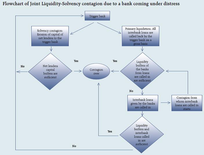 V. Liquidity risk The stress test was conducted based on cumulative cash flows in the 1-28 days’ time bucket. The cash inflows and outflows were stressed under baseline, medium, and severe scenarios as below: | (per cent) | | Stress Scenario | Decrease in Inflows | Increase in Outflows | | Baseline | 5 | 25 | | Medium | 5 | 50 | | Severe | 5 | 100 | The banks with negative cumulative mismatch (cash inflow less cash outflow) exceeding 20 per cent of the outflows were considered to be under stress on the basis of the circular RBI/2008-09/174 UBD. PCB. Cir. No12/12.05.001/2008-09 dated September 17, 2008, which stipulates that the mismatches (negative gap between cash inflows and outflows) during 1-14 days and 15-28-days’ time bands in the normal course should not exceed 20 per cent of the cash outflows in each time band. 2.3 Non-Banking Financial Companies (NBFCs) Stress Testing – Single factor sensitivity analysis Credit and liquidity risks stress tests for NBFCs have been performed under baseline, medium and high risk scenarios. I. Credit risk Methodology for assessing the resilience of NBFC sector to shocks in credit risk has been revised to enhance the model’s accuracy in predicting CRAR under baseline and two stress scenarios. Based on the revised model, assets, advances to total assets ratio, EBPT to total assets ratio, risk weight density and slippage ratio were projected over next one year time period. Thereafter, new slippages, provisions, EBPT, risk weighted assets and capital were calculated for the baseline scenario. For the medium and high risk scenarios, slippages under baseline scenario was increased by 1 SD and 2 SD and accordingly new capital and CRAR were calculated. II. Liquidity Risk Stressed cash flows and mismatch in liquidity position were calculated by assigning predefined stress percentage to the overall cash inflows and outflows in different time buckets over the next one year. Projected outflows and inflows as on March 2022 over the next one year were considered for calculating the liquidity mismatch under baseline scenario. Outflows and inflows of the sample NBFCs were applied a shock of 5 per cent and 10 per cent for time buckets over the next one year for the medium and high-risk scenarios respectively. Cumulative liquidity mismatch due to such shocks were calculated as per cent of cumulative outflows and NBFCs presenting negative cumulative mismatch were identified. 2.4 Interconnectedness - Network analysis Matrix algebra is at the core of the network analysis, which uses the bilateral exposures between entities in the financial sector. Each institution’s lendings to and borrowings from all other institutions in the system are plotted in a square matrix and are then mapped in a network graph. The network model uses various statistical measures to gauge the level of interconnectedness in the system. Some of the important measures are given below:  II. Cluster coefficient: Clustering in networks measures how interconnected each node is. Specifically, there should be an increased probability that two of a node’s neighbours (banks’ counterparties in case of a financial network) are neighbours to each other also. A high clustering coefficient for the network corresponds with high local interconnectedness prevailing in the system. For each bank with ki neighbours the total number of all possible directed links between them is given by ki (ki-1). Let Ei denote the actual number of links between agent i’s ki neighbours, viz. those of i’s ki neighbours who are also neighbours. The clustering coefficient Ci for bank i is given by the identity:  III. Tiered network structures: Typically, financial networks tend to exhibit a tiered structure. A tiered structure is one where different institutions have different degrees or levels of connectivity with others in the network. In the present analysis, the most connected banks are in the innermost core. Banks are then placed in the mid-core, outer core and the periphery (the respective concentric circles around the centre in the diagrams), based on their level of relative connectivity. The range of connectivity of the banks is defined as a ratio of each bank’s in-degree and out-degree divided by that of the most connected bank. Banks that are ranked in the top 10 percentile of this ratio constitute the inner core. This is followed by a mid-core of banks ranked between 90 and 70 percentile and a 3rd tier of banks ranked between the 40 and 70 percentile. Banks with a connectivity ratio of less than 40 per cent are categorised as the periphery. IV. Colour code of the network chart: The blue balls and the red balls represent net lender and net borrower banks respectively in the network chart. The colour coding of the links in the tiered network diagram represents the borrowing from different tiers in the network (for example, the green links represent borrowings from the banks in the inner core). (a) Solvency contagion analysis The contagion analysis is in nature of stress test where the gross loss to the banking system owing to a domino effect of one or more banks failing is ascertained. We follow the round by round or sequential algorithm for simulating contagion that is now well known from Furfine (2003). Starting with a trigger bank i that fails at time 0, we denote the set of banks that go into distress at each round or iteration by Dq, q= 1,2, …For this analysis, a bank is considered to be in distress when its Tier-I CRAR goes below 7 per cent. The net receivables have been considered as loss for the receiving bank. (b) Liquidity contagion analysis While the solvency contagion analysis assesses potential loss to the system owing to failure of a net borrower, liquidity contagion estimates potential loss to the system due to the failure of a net lender. The analysis is conducted on gross exposures between banks. The exposures include fund based and derivatives ones. The basic assumption for the analysis i