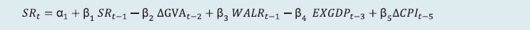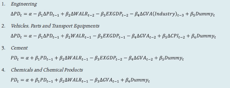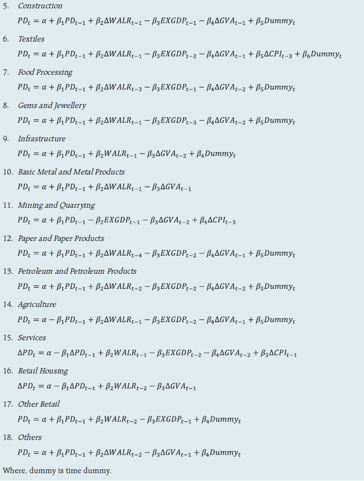 A.2.1 Corporate sector Corporate sector stability indicator and map The corporate sector stability indicator and map have been constructed using the following method: Data: The balance sheet data of non-government non-financial (NGNF) companies. Frequency: Annual (1992-93 to 2011-12). From 2012-13 to 2016-17, the half-yearly balance sheet data is used for the analysis. The ratios used under each dimensions are given in the Table A.2.1. | Table A.2.1: Ratios used for constructing the corporate sector stability map and indicator | | Dimensions | Ratios | | Profitability | RoA (Gross Profit/Total Assets)#, Operating Profit/Sales#, Profit After Tax/Sales# | | Leverage | Debt/ Assets, Debt/ Equity; (Debt is taken as Total Borrowings) | | Sustainability | Interest Coverage Ratio (EBIT to interest expenses)#, interest expenses/total expenditure; | | Liquidity | Quick Assets/ Current Liabilities (quick ratio)#; | | Turn-Over | Total Sales / Total Assets#. | | # Negatively related to risk. | Each ratio (Xt) was normalised for the sample period using relative distance transformation given below: For (#) negatively related ratios (to risk), one’s complement was used. For each dimension a composite index was derived as a simple average of relevant d’s (principal component analysis (PCA) also gives equal weights). The Map is constructed using composite index for each dimension. The overall corporate sector stability indicator is a weighted average of 5 dimensions. The weights are obtained using PCA. The derived weights for five dimensions are as follows: | Profitability | Leverage | Sustainability | Liquidity | Turn-Over | | 25% | 25% | 25% | 10% | 15% | Sensitivity Analysis-Stress test The resilience of the NGNF listed companies to potential shocks to domestic interest rates and operating profits were assessed using sensitivity tests. A set of common companies were taken for three years. The tests were done for the following three scenarios: Scenario 1: Operating profit decreased by 25 per cent. Scenario 2: Domestic interest rates increased by 250 basis points (bps). Scenario 3: Combined effect of the above two scenarios. The number of weak and weak leveraged companies and share of debt of such companies in the total debt of all companies in the sample were calculated by imparting shocks on half-yearly balance sheet and profit and loss statements of each company for the last three half years. In scenario 1, the operating profit is decreased by 25 per cent, which impacted the earnings before interest, tax and depreciation (EBITDA). This resulted in a decline in earnings before taxes (EBT) and thus lowered the provisions. Tax provision is decreased by using tax by EBT ratio for companies reporting positive EBT. Tax provisions of companies reporting negative EBT were not adjusted. The decline in net profits is adjusted in the reserves and surplus of the balance sheet. Under scenario 2, the cost of borrowings of each company is computed using interest payable to the average total borrowings of the companies. Cost of borrowings of each company is increased by 250 bps and the increased interest expenses is computed. Increase in interest expenses resulted in decline in EBT. The tax provision and reserve and surplus were adjusted using the same procedure as described in scenario 1. A.2.2 Scheduled commercial banks Banking stability map and indicator The banking stability map and indicator present an overall assessment of changes in underlying conditions and risk factors that have a bearing on the stability of the banking sector during a period. The five composite indices used in the banking stability map and indicator represent the five dimensions of soundness, asset-quality, profitability, liquidity and efficiency. The ratios used for constructing each composite index are given in Table A.2.2. | Table A.2.2: Ratios used for constructing the banking stability map and indicator | | Dimension | Ratios | | Soundness | CRAR # | Tier-I Capital to Tier-II Capital # | Leverage Ratio as Total-Assets to Capital and Reserves | | Asset- Quality | Net NPAs to Total- Advances | Gross NPAs to Total- Advances | Sub-Standard-Advances to Gross NPAs # | Restructured-Standard- Advances to Standard- Advances | | Profitability | Return on Assets # | Net Interest Margin # | Growth in Profit # | | Liquidity | Liquid-Assets to Total-Assets # | Customer-Deposits to Total-Assets # | Non-Bank-Advances to Customer-Deposits | Deposits maturing within-1-year to Total Deposits | | Efficiency | Cost to Income | Business (Credit + Deposits) to Staff Expenses # | Staff Expenses to Total Expenses | | Note: # Negatively related to risk. | Each composite index, representing a dimension of bank functioning, takes values between zero and 1. Each index is a relative measure during the sample period used for its construction, where a higher value means the risk in that dimension is high. Therefore, an increase in the value of the index in any particular dimension indicates an increase in risk in that dimension for that period as compared to other periods. For each ratio used for a dimension, a weighted average for the banking sector is derived, where the weights are the ratio of individual bank assets to total banking system assets. Each index is normalised for the sample period using the following formula:  Where, Xt is the value of the ratio at time t. A composite index of each dimension is calculated as a weighted average of normalised ratios used for that dimension where the weights are based on the marks assigned for assessment for the CAMELS rating. The banking stability indicator is constructed as a simple average of these five composite indices. Macro-stress testing To ascertain the resilience of banks against macroeconomic shocks, a macro-stress test for credit risk was conducted. Under this, the impact of macro shock on GNPAs ratio of banks (at system and major bank-groups level) and finally on their capital adequacy (bank-by-bank an
