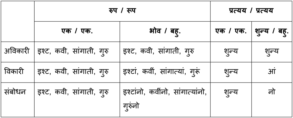 - ‘आ’ न सोंपपी संस्कृतांतलीं नामां: / ‘आ’ से अंत होने वाली संस्कृत की संज्ञाएं: