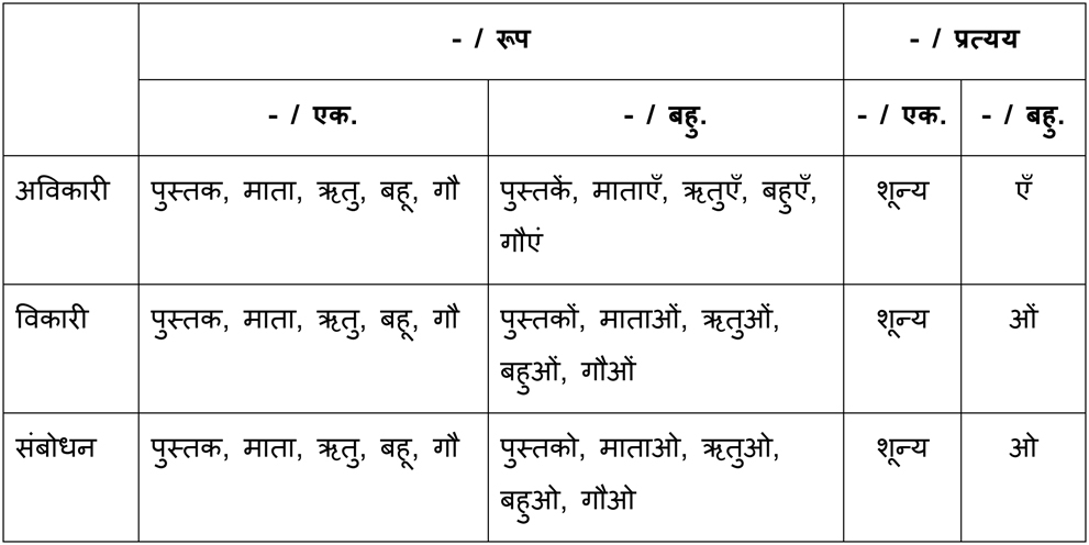 देखीक: दया, कृपा, क्षमा / जैसेः दया, कृपया, क्षमा। आडवाद: राजा, रुपया / अपवाद: पिता, कर्ता। - - / ‘इ’ से अंत होने वाली संज्ञाएं: