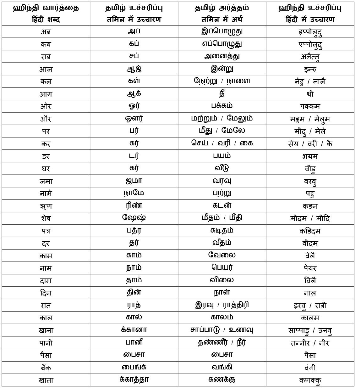 நேரம் என்ன ஆயிற்று? (नेरम एन्न आयिट्रु ?) | क्या समय हुआ है ? | What’s the time? |