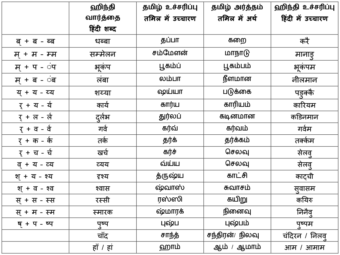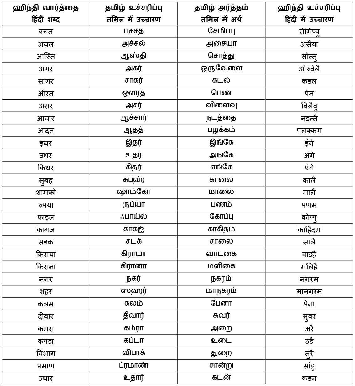 தாஜ் எக்ஸ்பிரஸ் தினமும் காலை தில்லியில் இருந்து ஆக்ரா செல்கிறது. (ताज एक्सप्रेस तिनमुम कालै दिल्लीयिल इरुंदु आग्रा सेल्हिरदु।) | ताज एक्सप्रेस रोज सुबह दिल्ली से आगरा जाती है। | Taj Express leaves Delhi for Agra every morning. |