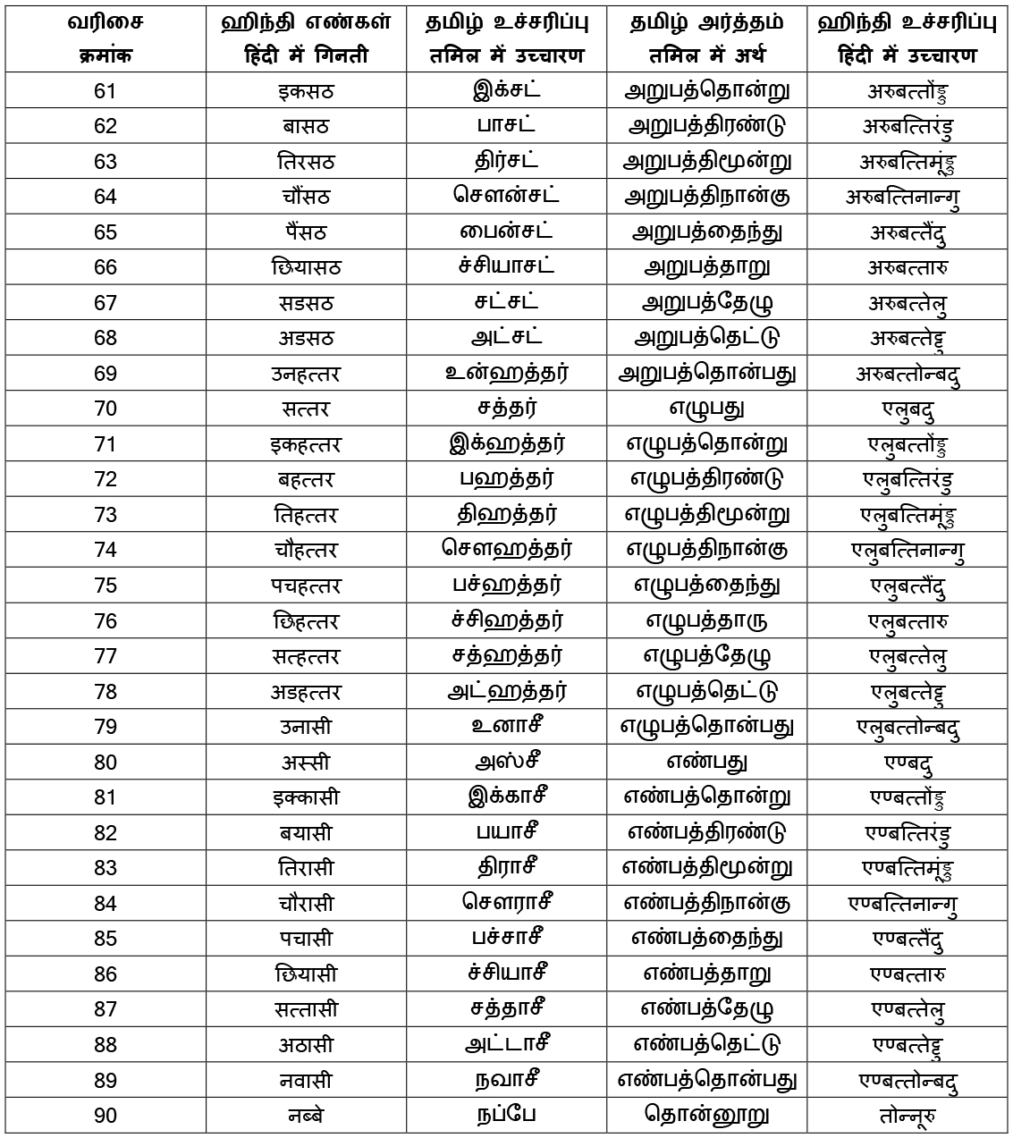 நேரம் பதினொரு மணியாக பத்து நிமிடங்கள் உள்ளன. (नेरम पदिनोरु मणियाग पत्तु निमिडंगल उल्लन।) | ग्यारह बजने में दस मिनट हैं। | It’s ten minutes to eleven. |