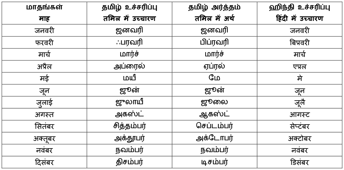 நேரம் – மணி – நாள் (नेरम – मणि – नाल) | समय/घंटे/दिन | Time – Hour - Day |