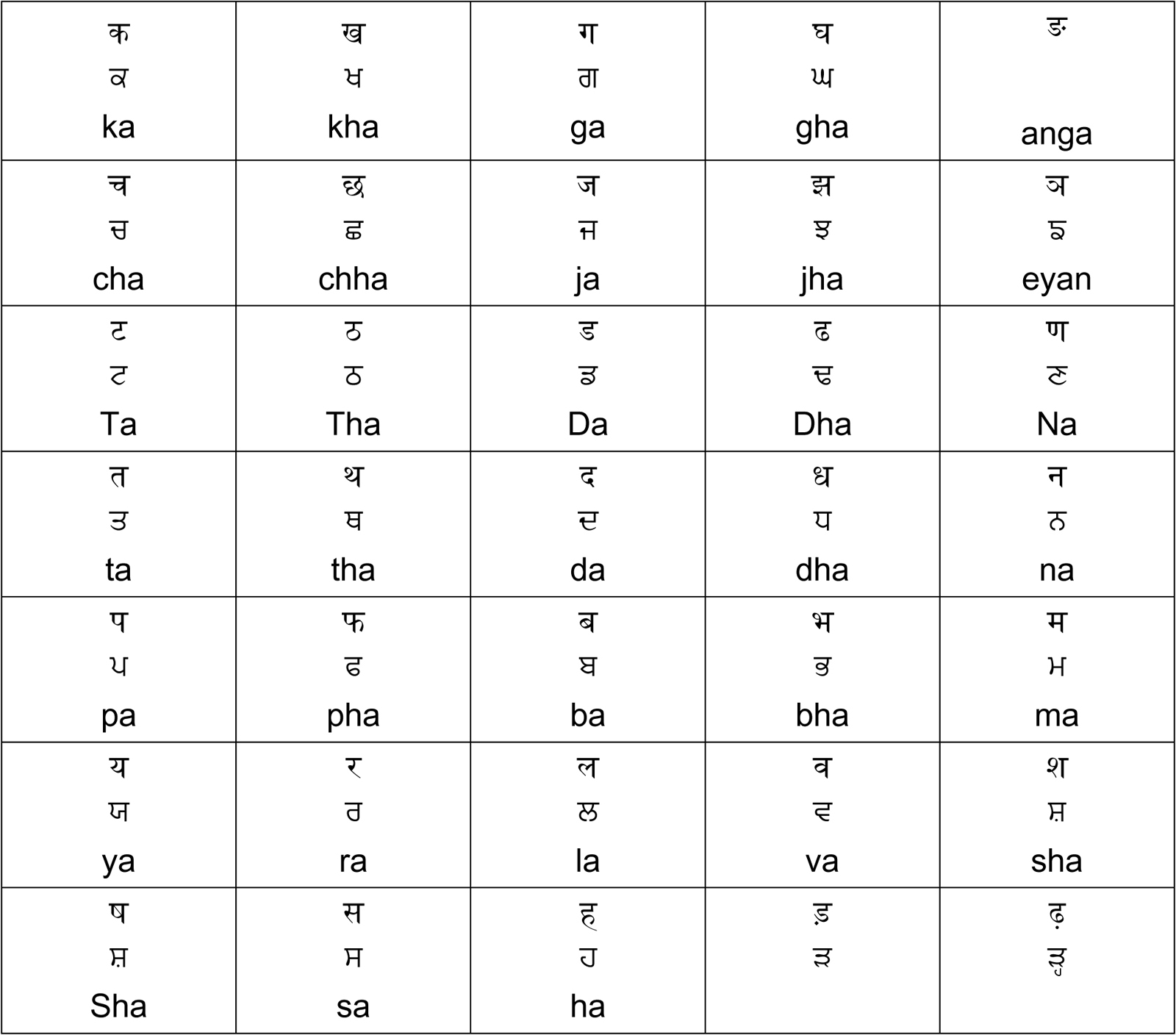 ਜਿਵੇਂ / जैसेः छत, खाट, हाट।