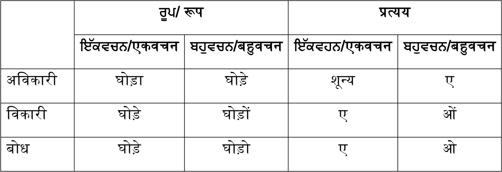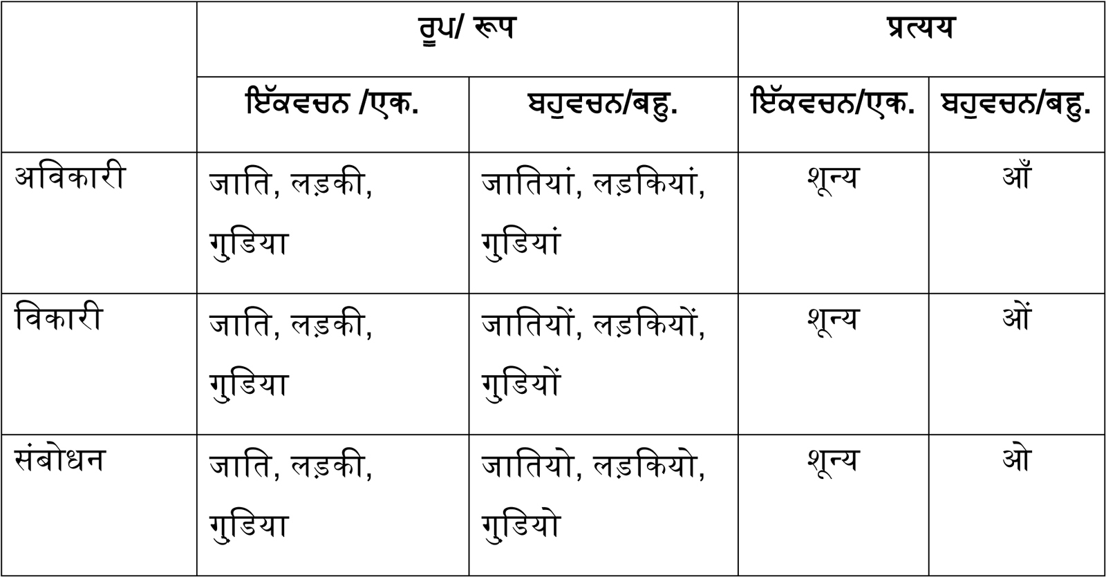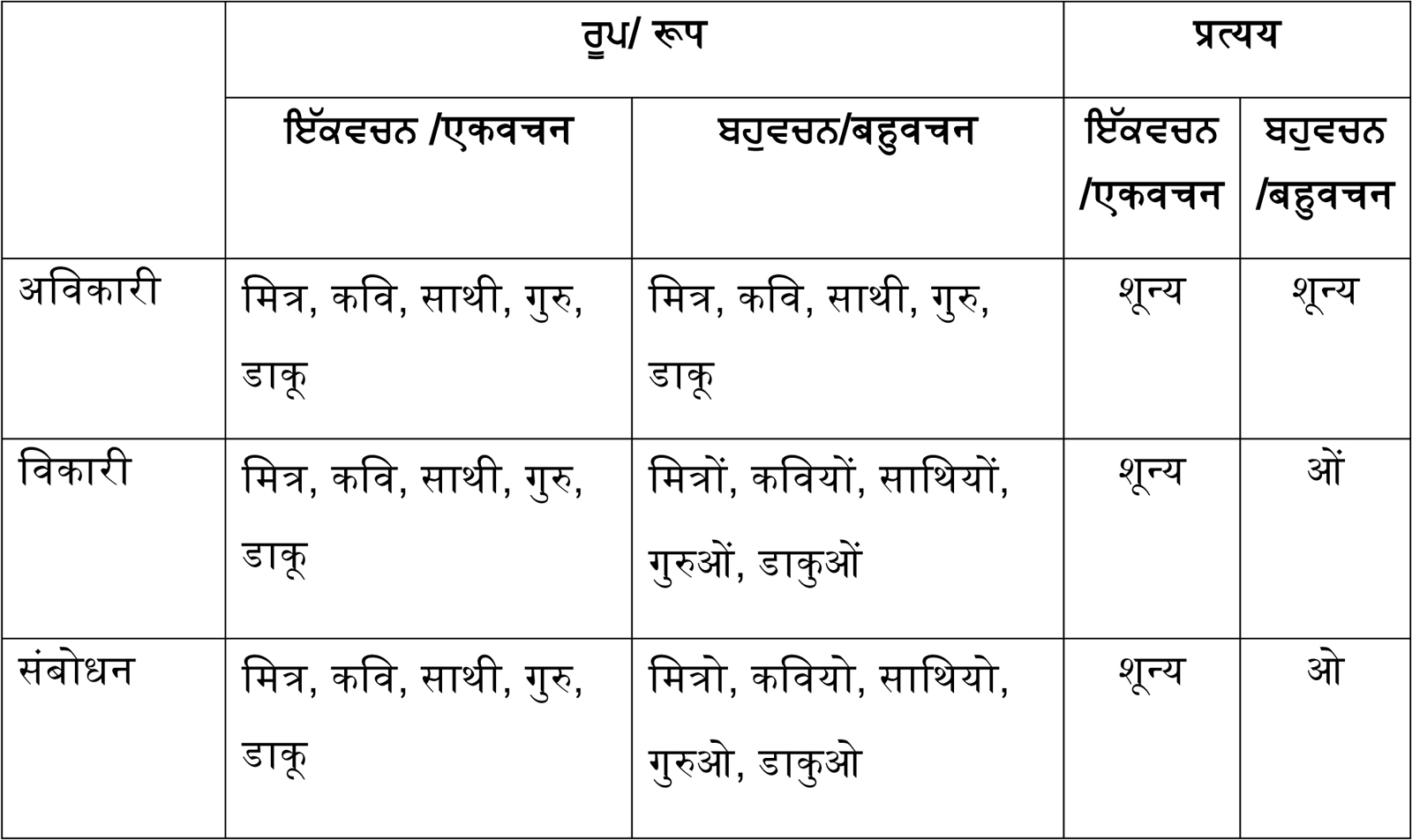 | 1 | ਕਰਤਾ / कर्ता | ‘ने’ या ‘o’ (कुछ भी नहीं)।@ ‘ने’ ਜਾਂ’ ‘o’ (ਕੁੱਝ ਵੀ ਨਹੀਂ )।@ |