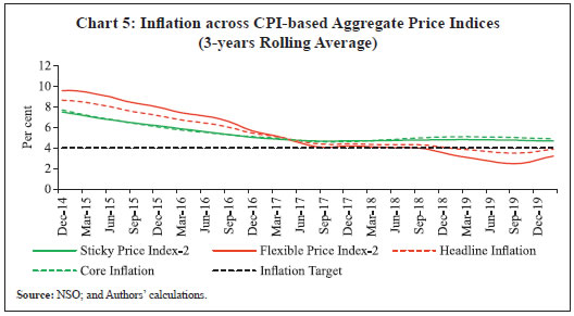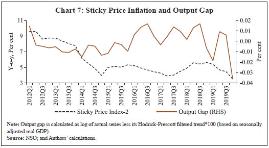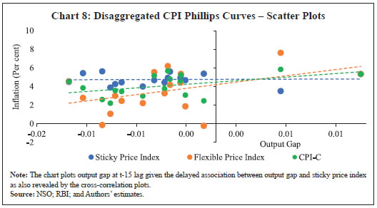 Sujata Kundu, Himani Shekhar and Vimal Kishore* Received on: April 20, 2022 Accepted on: June 27, 2022 This study analyses the Consumer Price Index-Combined (CPI-C) data at a disaggregated level by identifying different price-setting methods, viz., maximum retail price (MRP), non-MRP, mixed (both MRP and Non-MRP based items) and fixed (items with administered prices). Based on their price dynamics, it constructs a Sticky Price Index and a Flexible Price Index and finds that the headline inflation is primarily driven by flexible price inflation, while inflation excluding food and fuel largely co-moves with sticky price inflation. The study then analyses the underlying relationship between the sticky price index and output gap in a New Keynesian Phillips Curve (NKPC) framework using data from 2011:Q1-2019:Q4 and compares the results with the Phillips Curve (PC) estimates based on headline CPI-C and the flexible price PC. The results indicate that the sticky price PC is much flatter and the impact of output gap on inflation occurs with a significant lag, suggesting that the sticky price index is less sensitive and slow to adjust to changes in economic slack. JEL: E3, E31, C38 Keywords: Flexible Price Index, Inflation, K-means Clustering, New Keynesian Phillips Curve, Phillips Curve, Sticky Price Index. Introduction The effectiveness of monetary policy in achieving its ultimate goals hinges on the price-setting behaviour of economic agents. When prices are fully flexible a tightening of monetary policy reduces inflation, but without any effect on output or other real variables. For monetary policy to generate any real output effects, prices must be sticky. In new Keynesian models, monetary policy can become non-neutral because of the widely observed sticky behaviour of price movement (Gali, 2010). Price stickiness, thus, creates scope for monetary policy to pursue the goals of output and employment. It has been found that the output responses of different industries systematically vary depending on the extent to which their prices remain sticky (Henkel, 2020). Not only that, the heterogeneity in the degree of price stickiness across product groups also raises the degree of monetary non-neutrality (Nakamura and Steinsson, 2010). With multiple production sectors in the Indian economy, it could be, therefore, useful to examine the degree of price stickiness in the all India Consumer Price Index - Combined (CPI-C) and its implications for monetary policy. While a major chunk of the literature in the Indian context in recent times has been devoted largely towards validating the existence of the Phillips curve (PC) relationship in the Indian data (Mazumder, 2011; Behera, et al., 2017; Patra et al., 2021) and exploring different aspects of inflation forecasting (Dholakia and Kandiyala, 2018; Pratap and Sengupta, 2019; John, et al., 2020; Jose et al., 2022), little attention has been paid to differences in the price-setting behaviour and related heterogeneity in price dynamics across items in the basket. Literature suggests that the foundations of medium-term inflation forecasting lie in the expectations augmented PC, also referred to as the New Keynesian Phillips Curve (NKPC), wherein the degree of nominal rigidity in prices is one of the key determinants of the slope of the curve (Aucremanne and Dhyne, 2004; Behera and Patra, 2020). This paper, while drawing insights from this literature, intends to examine the degree of price stickiness in the all India CPI-C and decomposes the basket into two separate indices viz., a sticky price index and a flexible price index. To attain this objective, the paper first documents the differences in the price-setting behaviour across 299 CPI-C items on the basis of whether the item comes with the tag of a maximum retail price (MRP), without any MRP tag (non-MRP) or its price is administered/regulated by the government, following which the items are classified into the two sub-indices based on certain important parameters such as ‘inflation and its volatility’; and ‘price momentum and its volatility’. While studies such as this abound in the case of advanced economies (AEs) [Bils and Klenow, 2004; Dias et al., 2004; Aucremanne and Dhyne, 2004; Dhyne et al., 2005; Alvarez et al., 2006; Alvarez et al., 2010; Bryan and Meyer, 2010; Millard and O’Grady, 2012; Reiff and Varhegyi, 2013], research in the Indian context is at a nascent stage with a limited number of studies focusing largely on food prices or wholesale price index (WPI) based firm-level price-setting behaviour (Tripathi and Goyal, 2012; Rather et al., 2015; Banerjee and Bhattacharya, 2017; Nadhanael, 2020). Based on such classification, the paper further investigates the sensitivity of sticky and flexible price components to output gap under an NKPC framework to better understand the underlying price dynamics which can aid in policy making. The time-period covered for this study spans over 2011-2019, as the all India CPI-C item level data are available starting from January 2011.1 The empirical section is based on quarterly data covering the period 2011:Q1-2019:Q4 (recognising a break in the item level data series during March-May 2020 owing to COVID-19 pandemic driven disruptions in data collection and compilation). It is observed that movements in headline inflation sync well with the flexible price inflation, whereas inflation excluding food and fuel (hereafter ‘core inflation’) shares a significant co-movement with sticky price inflation. Literature in the context of advanced economies has shown that the flexible price index tends to bounce violently from month to month as it responds strongly to changing market conditions, including the degree of economic slack. On the other hand, sticky prices are slow to adjust to economic conditions (Bryan and Meyer, 2010). Therefore, in this regard, while it could be expected that the flexible price index in the case of the Indian CPI would also rea