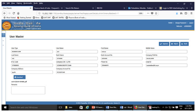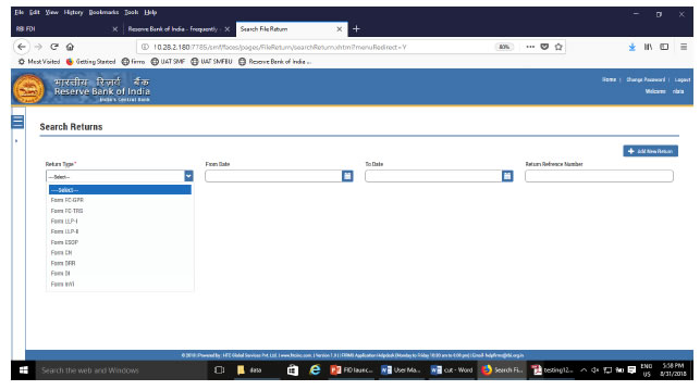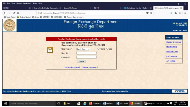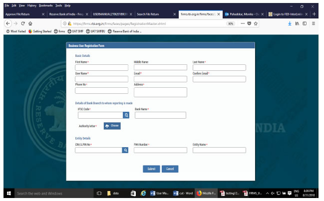 | FIRMS Application Foreign investment in India - Reporting in Single Master Form 1. Introduction 1.1 The Reserve Bank, in the First Bi-monthly Monetary Policy Review dated April 5, 2018 announced that, with the objective of integrating the extant reporting structures of various types of foreign investment in India, it will introduce a Single Master Form (SMF) subsuming all the existing reports. 1.2 In order to implement this announcement, the Reserve Bank is introducing an online application, FIRMS (Foreign Investment Reporting and Management System), which would provide for the SMF. FIRMS would be made online in two phases. In the first phase, the first module viz., the Entity Master, was made available online. Instructions in this regard were already issued through A. P. Dir. Series Circular No. 30 dated June 07, 2018. 1.3 In the second phase, the second module is being made available with effect from September 01, 2018. With the implementation of SMF, the reporting of FDI, which is presently a two-step procedure viz., ARF and FC-GPR is merged into a single revised FC-GPR. With effect from September 01, 2018, five forms viz., FC-GPR, FC-TRS, LLP-I, LLP-II and CN were being made available for filing in SMF. The other three forms viz., ESOP, DI, and DRR are being made available for filing with effect from October 23, 2018. Form InVI would be made available subsequently. With effect from September 01, 2018, all new filings for the 5 forms and other three forms viz., ESOP, DRR and DI with effect from October 23, 2018 have to be done in SMF only. 1.4 The first module was made available to the public for data entry between June 28 (at 1:00 PM) and July 12, 2018. The date was extended till July 20, 2018. For those companies which could not register within the stipulated time period may register for the entity master with effect from September 01, 2018. However, they shall provide the reasons for not making registration within the time period along with the authority letter. 2. Important Abbreviations and Definitions Abbreviations | Abbreviation | Description | | FEMA 20(R) | Foreign Exchange Management (Transfer or issue of security by a person resident outside India) Regulations, 2017 dated November 07, 2017 and as amended from time to time. | | FIRMS | Foreign Investment Reporting and Management System | | SMF | Single Master Form | | AD Bank | Authorised Dealer Bank | | BU | Business User | | EM | Entity Master | | LLP | Limited Liability Partnership | | CN | Convertible Notes | | ESOP | Employee Stock options | | DR | Depository Receipts | | ADR | American Depository Receipts | | GDR | Global Depository Receipts | | DI | Downstream Investment | Definitions 1. FIRMS: An online reporting platform for reporting of foreign investment in India in SMF. FEMA 20(R) prescribes for the reporting of foreign investment in India through various returns. FIRMS provides a one stop shop, 24*7 online reporting facility for the applicant. 2. SMF: A master form which provides for the reporting of 9 forms for foreign investment viz., FC-GPR, FC-TRS, LLP-I, LLP-II, CN, DRR, ESOP, DI, InVi. With effect from September 1, 2018, five forms viz., FC-GPR., FC-TRS, LLP-1, LLP-II and CN were made available. Other three forms viz., ESOP, DI and DRR are being made available for filing with effect from October 23, 2018. Form InVi would be made available subsequently. 3. Business User: The applicant reporting the for the transaction in Single Master form at FIRMS. A BU can use his login credentials for only the entity that has authorized him/her to report the transactions. If the person wants to act as a BU for another entity, he must register himself separately. Further, at the time of registration, BU has to select the IFSC code of the bank which would approve the eKYC (explained under the head “Registration of Business User”)and the reporting would be made in SMF. In case the IFSC details are changed i.e BU wishes to submit the reporting to another branch or another bank, the entity being the same, he/she needs to repeat the registration process for Business user with the new IFSC code and obtain separate Login. 4. E-KYC: Every business user has to be eKYC verified before any reporting can be made in the Single Master Form. This would ensure that only genuine Logins are made available in the FIRMS application. All eKYC would be verified by the AD banks. 5. KYC: Know Your Customer: For the remittance received from the non-resident investor, the KYC of the same is to be provided along with the forms in SMF as and where applicable and indicated. The format of the KYC is as below: 3. Registration for Business User. Step 1. Go to the FIRMS website at https://firms.rbi.org.in Step 2 : At the Login box, click on Registration form for New Business User. Step 3 : Fill up the details in the popped up registration form for BU as below | Field Name | Description | | First Name | First Name of the BU | | Middle Name | Middle Name of the BU | | Last Name | Last Name of the BU | | User Name | User name for the BU. It shall be unique. | | Email | Email ID of the BU | | Confirm email | Email ID of the BU | | Phone No | Mobile No of the BU. | | Address | Correspondence Address of the BU | | IFSC code | Select the IFSC code of the Bank branch to whom the reporting would be made. This field shall be carefully selected so that the reporting is made to the correct branch of the bank. The applicant shall be versed with the working model of his/her bank for the foreign investment reporting in terms of the branches which are operating for the approval/rejection of the reported forms in the FIRMS application. Not all branches are incorporated in the FIRMS application, but only those as specified by the respective bank. If the applicant is unable to find its respective branch under the IFSC code, he/she may contact its branch for clarification on this issue. | | Bank name | Auto-populated as per the IFSC code selected | | Authority letter-