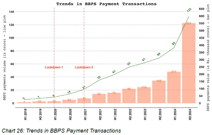 Contents 1. Foreword 1.1 Over the past few years, digital payments in India have witnessed a phenomenal growth buoyed by the spectacular progress of Unified Payments Interface (UPI) and the plethora of digital payment options available. From the nascent digital payment ecosystem, comprising mostly of traditional card based digital payments, it has transformed to an ecosystem offering a bouquet of digital payment options catering to every need of the Indian consumer – instant payment systems (UPI, IMPS), small value payment systems (PPI, UPI Lite), large value payment (RTGS), bill payment (BBPS), bulk payment (NACH), offline payment (UPI Lite X), government payments (NACH, APBS), toll payments (NETC) and many more. 1.2 Retail digital payments in India have grown from 162 crore transactions in the financial year 2012-13 to over 16,416 crore transactions in the financial year 2023-24 i.e., approximately 100-fold increase over 12 years. The remarkable growth in payment infrastructure and payment performance is also apparent in the Digital Payment Index published by RBI, which has witnessed more than four-fold rise in the last six years (445.50 for March 2024, base 100 as of March 2018). 1.3 Throughout the development of the payments’ ecosystem, the Reserve Bank has devoted equal attention to its safety and security as well as protection of consumers. Payment safety measures such as two factor of authentication have been promoted, which incidentally, is still not mandatory in many advanced countries. The facility to switch on / off and set / modify transaction limits for all types of card transactions ensures that consumers have complete control over their payment options. Tokenisation of cards has within a period of two years seen large-scale adoption by consumers with over 91 crore card-on-file tokens created as on December 31, 2024. Master Directions on Cyber Resilience and Digital Payment Security Controls for Payment System Operators (PSOs), aimed to enhance safety and security of payment systems by providing a framework for overall information security preparedness with emphasis on cyber resilience, which cover baseline cyber and information security measures for PSOs and ensure safe and secure digital payment transactions have also been issued. 1.4 While domestic payment systems have become cheap and fast, cross-border payments remain expensive and slow. The Reserve Bank is focusing on interlinking the fast payment systems (FPS) with that of other countries to offer a seamless and less-costly cross-border payment experience. This mechanism and methodology of addressing the challenges in enhancing cross-border payments (i.e. high cost, low speed, limited access and limited transparency) has also been recognised by the international standard setting bodies (FSB, CPMI, etc.). Last year the Unified Payments Interface of India (UPI) and PayNow of Singapore were interlinked through extensive collaboration between RBI and Monetary Authority of Singapore. Recent data shows that the cost of sending a remittance has come down noticeably. 1.5 When it comes to payment systems, the Reserve Bank has always endeavoured to stay ahead of the curve. It has been the policy of the Bank to encourage innovation in the payment sector. RBI regularly engages with the PSOs and attempts to provide a nurturing environment. Fuelled by innovation and regulatory support, our payment systems have become one of the most modern across the globe. Sd/- T. Rabi Sankar Deputy Governor January 27, 2025 2. Overview 2.1 Payments form the backbone of any economic activity. They are increasingly being recognised as a means of achieving financial inclusion by ensuring that economic benefits reach all segments of society. The legal foundation for regulating payment systems evolved from the Payments and Settlement Systems Act, 2007 (PSS Act). The Reserve Bank of India (RBI) regulates, supervises, and licenses payment system operators, ensuring safety, security, efficiency, and effectiveness of the payment ecosystem as well as protecting the interests of the consumers. The Board for Regulation and Supervision of Payment and Settlement Systems (BPSS), chaired by the RBI Governor, formulates policies for the regulation and supervision of all types of payment and settlement systems, sets standards for existing and future systems, authorises payment and settlement systems, determines criteria for membership to these systems and decides on continuation, termination and rejection of membership. The BPSS meets quarterly and reports annually to the RBI Central Board. 2.2 Digital Payments in India have grown exponentially in the last decade. While in CY-2013 there were 222 crore digital transactions valued at ₹772 lakh crore, it has increased 94 times in volume and more than 3.5 times in value to over 20,787 crore transactions valued at ₹2758 lakh crore in CY-2024. In the last five years alone, digital payments in India have increased 6.7 times in volume and 1.6 times in value. This amounts to a five-year CAGR of 45.9% in terms of digital payments volume and 10.2% in terms of digital payments value. 2.3 The payments landscape in India consists of diverse options offered by banks and non-banks. During the last decade, the payment landscape has witnessed rapid expansion in terms of availability, user adoption and acceptance infrastructure. 2.4 Unified Payments Interface (UPI), launched in 2016 by the National Payments Corporation of India (NPCI), has emerged as the most used and preferred payment channel, and has revolutionized India's payment ecosystem by consolidating multiple bank accounts into one mobile interface. UPI's real-time, user-centric functions democratize payments and extend digital payments to previously unreached segments. Since its launch in 2016, UPI has seen multiple enhancements. Key being UPI lite for small value transactions, UPI lite X for offline payments and UPI123 Pay for feature phone users. UPI processes o