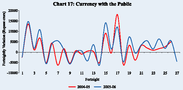Demand for currency recorded a higher growth during 2005-06, in consonance with acceleration in economic activity. Currency demand generally