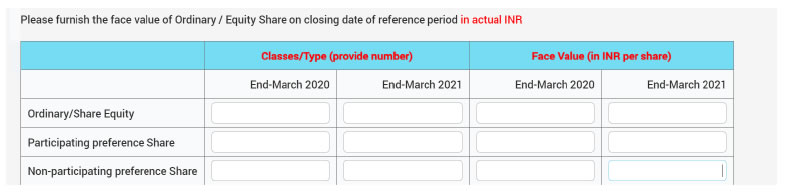 2. If the existing non-resident investor change their holding (from FDI (more than 10%) to DI (less than 10% or DI to FDI), then the entity needs to delete the existing data for those investors and fill in appropriate tab (as per revised holding).