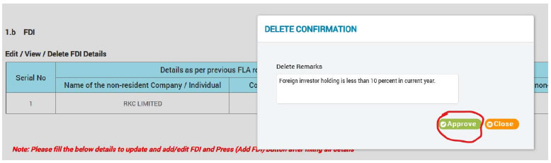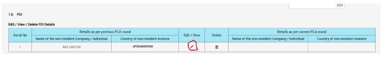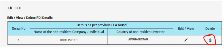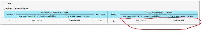 Ans: While filling section III, in 1.b / 2.b, non-resident investor details / non-resident investor countries’ details will be displayed as pre-filled (for the companies which have reported FLA- for previous year(s)) and by clicking on Edit/Delete button companies will be able to modify the non-resident investor details (companies will be able to choose to add new investor/ delete existing investors). For new companies (who have not reported FLA for previous year(s)), details related to non-resident investors has to be entered by the entity.