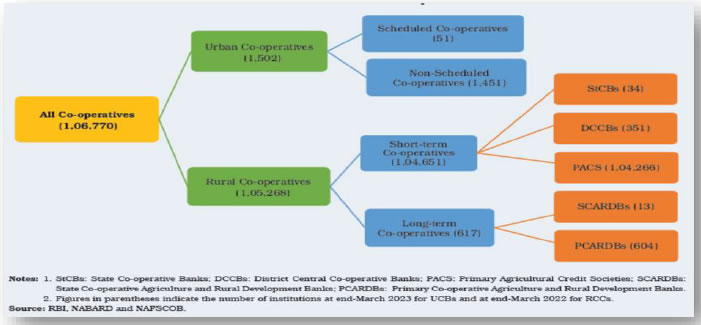 The shares of these institutions cannot be listed and traded. Difference between Co-operative Credit Societies and Co-operative Banks ‘Co-operative societies’ appear at entry 32 in the State List, whereas ‘Banking’ appears at entry 45 in the Union List under the Seventh Schedule to the Constitution of India. Hence, Co-operative Societies in India are a state subject, and they do not fall under the regulatory purview of RBI. Co-operative Credit Societies primarily cater to the credit needs of its members by mobilizing deposits from their own members. Co-operative Credit Societies, which are licensed to carry out banking activities function as a co-operative bank and are eligible to accept deposits from the public. Urban Co- operative Banks (UCBs) are primarily registered as Co-operative Societies under the provisions of either the State Co-operative Societies Act of the respective State or the Multi-State Co- Operative Societies Act, 2002, if the area of operation of the bank extends beyond the boundaries of one State. Legal framework for regulating Co-operative Banks Banking Regulation Act (then called the as Banking Companies Act) came into force in 1949, however, the banking laws were made applicable to co-operative societies only in March 1966 through an amendment to the Act (and renamed as Banking Regulation Act) by insertion of section 56 (Part V) of the Act, which is commonly known as Banking Regulation Act, 1949 (AACS)- (As Applicable to Co-operative Societies). With this, co-operative banks came under the dual control of respective State Governments / Central Government and the Reserve Bank, which make these institutions distinctly different from commercial banks. While administrative aspects like registration, recruitment, and liquidation are regulated by the State/Central Governments, matters related to banking are regulated by the Reserve Bank under the Banking Regulation Act, 1949 (AACS). There are also certain aspects where the Governments and RBI have concurrent powers. Recently, amendments have been made in Banking Regulation Act (BR), 1949 and Maharashtra State Co-operative Societies (MSCS) Act, 2002 vide Banking Regulation (Amendment) Act, 2020 and The Multi-State Co-operative Societies (Amendment) Act, 2023 respectively. The 2023 amendment to MSCS Act, 2002 seeks to amend the Act in order to align its provisions with those provided under Part IXB of the Constitution and address certain concerns with the functioning and governance of co-operative societies. The objective of the amendment to BR Act was to enhance RBI's regulatory oversight over co-operative banks in terms of management, capital, audit and liquidation in order to strengthen co-operative banks. The amended Act inter alia and provided for augmenting capital by Urban Co-operative Banks through issues of shares, debentures and other similar securities, by way of public issue or private placement, with the approval of and subject to conditions that may be stipulated by RBI. The amended Act also has various other provisions of the principal Act, such as those related to management, audit, amalgamation, etc., to co-operative banks. The amended Act empowers RBI to remove a director and appoint additional director on the board of co-operative banks. It further added that in case of a co-operative banks registered with the Registrar of Co- operative Societies of a State, the RBI may supersede the Board of Directors after consultation with the concerned State Government, and within such period as may be specified by it. Moreover, RBI may exempt a cooperative bank or a class of co-operative banks from certain provisions of the Act through notification for such time and under such conditions as may be specified by it. Over the years, the Reserve Bank has been initiating reforms to strengthen the co-operative banking structure. Its two-pronged strategy consists of statutory reforms and regulatory support. The Reserve Bank revised the regulatory framework governing UCBs on July 19, 2022. The vision guiding the framework is to consolidate their position as friendly neighborhood banks by catering to the heterogeneity in the customer base, while offering more operational flexibility to strong UCBs to enhance their contribution to credit intermediation. While UCBs are regulated and supervised by RBI, Rural Co-operative Banks, viz., the State Co-operative Banks (StCBs) and the District Central Co-operative Banks (DCCBs) are regulated by RBI but supervised by National Bank for Agriculture and Rural Development (NABARD). The Long-Term Rural Co-operatives, viz., State Co-operative Agriculture and Rural Development Bank (SCARDB) and Primary Co-operative Agriculture and Rural Development Bank (PCARDB) do not fall under the regulatory or supervisory purview of RBI. Definition of a Co-operative Bank Sec. 5 (ccv) of Banking Regulation Act, 1949 (AACS) defines UCBs as a co-operative society, other than a primary agricultural credit society and satisfying the following conditions: -