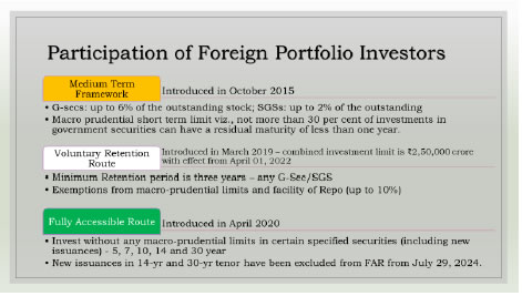 Co-operative societies and limited liability partnerships with a minimum net-worth of ₹100 crore, may also issue CPs under these Directions, subject to the condition that all fund-based facilities availed, if any, by the issuer from banks/ AIFIs / NBFCs are classified as Standard at the time of issue. The end use of the issue proceeds has to be disclosed in the offer document at the time of issuance of a CP/NCD. The minimum credit rating required for the issuance of CPs and NCDs, as assigned by a Credit Rating Agency (CRA), is ‘A3’ according to the rating symbol and definition prescribed by SEBI. All primary issuance of CPs and NCDs as well as OTC trades in these instruments must be reported within the specified timeframe after execution of the trades to the Financial Market Trade Reporting and Confirmation Platform (“F-TRAC”) of CCIL. The duties and obligations of the Issuer, Issuing and Paying Agent (IPA), Debenture Trustee and CRA are outlined in the RBI’s guidelines. Certificate of Deposits (CD) CD is a negotiable, unsecured money market instrument issued by a bank/AIFI as a Usance Promissory Note against funds deposited at the bank or the AIFI for a specified time period. CDs can be issued by (i) scheduled commercial banks, including RRBs and SFBs), and (ii) AIFIs that have been permitted by the RBI to raise short-term resources within the umbrella limit fixed by the RBI. The maturity period of CDs issued by banks should not be less than 7 days and not more than one year, while that by AIFIs should not be less than 1 year and not exceed 3 years. Banks / AIFIs cannot grant loans against CDs unless specifically permitted by the RBI. All primary issuances of a CD and OTC trades in CD are required to be reported within the specified timeframe after execution of the trades to the F-TRAC of CCIL. Government Securities (G-Sec) Market G-Sec market is an extremely critical segment of any financial system. The G-sec market is distinct from other financial markets in a fundamental way – it is the market in which the risk-free interest rate, a key macroeconomic variable, is determined. G-sec yields act as the benchmark for pricing of most financial assets. It is a market where debt instruments issued by the Government, such as Treasury bills, government bonds, and other securities, are traded. These securities are issued by the Government to raise funds for financing its expenditures, including infrastructure projects, social programs, and other public services. The development of the primary segment of this market allows public debt managers to raise funds from the market in a cost-effective manner, with appropriate consideration of the associated risks. A robust secondary market of the G-Sec market aids in the effective implementation of monetary policy by regulating the money supply in the economy through use of instruments, such as Open Market Operations (OMOs). OMOs refers to the buying and selling of government securities in the open market as mentioned above, the G-Sec market is also considered as the foundation of fixed income securities markets, as it provides the benchmark yield curve and enhances liquidity in other financial markets. The existence of an efficient government securities market is seen as an essential precursor for development of the corporate debt market. There are other distinctive features of the G-sec market. First, globally the G-sec market is predominantly an institutional market, with the major participants being banks and long-term investors, including investment funds, insurance funds, pension funds. Second, different G-sec instruments are highly substitutable, the only differentiating factor being tenor of instruments. This is one of the reasons why the G-sec yield curve may be viewed as a public good. Third, G-secs provide the most widely used high quality collateral for payment and settlement systems, liquidity management operations and other financial sector transactions. Fourth, virtually all monetary operations are executed in the G-sec market. Effective monetary policy transmission is fundamentally linked to an efficient G-sec market in any market economy. G-Secs may be issued by the Central Government as well as various state governments. In India, the Central Government issues both, treasury bills and bonds (or dated securities) while the State Governments issue only bonds (or dated securities) called as State Government Securities (SGSs). Dated Government securities are long term securities (longer than 1 year of original maturity) and carry a fixed or floating coupon (interest rate) which is paid on the face value, payable at fixed time periods (usually half-yearly). The tenor of dated securities can be very long (currently up to 50 years in India). The important developmental and regulatory roles performed by RBI in the G-Sec Market are mentioned below: Developmental Role The G-Sec market in India in the past had been narrow principally due to low coupon rates. Moreover, the captive market was dominated by institutional investors who had to compulsorily invest in government and other approved securities to comply with statutory requirements. The Reserve Bank realised that a strong and vibrant government securities market was a sine qua non for discharging its responsibilities as debt manager and regulator, as also for effective monetary and public debt management for the reason explained above. Since the onset of financial sector reforms in India, RBI has taken several important measures for development of the G-Sec market. The development of the G-sec market was greatly facilitated by the abolition of automatic monetization of government debt, introduction of the auction process for primary issuance and enactment of Fiscal Responsibility and Budget Management (FRBM) Act, 2003. Transparency in supply was enhanced through the introduction of issuance calendars for auctions in G-secs since April 2002. Auctions are conducted electronicall