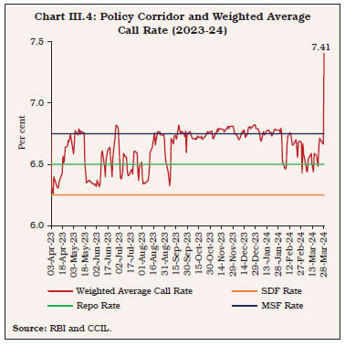 With the cumulative interest rate increases of 250 basis points (bps) undertaken in 2022-23, headline inflation moderated and moved into the tolerance band during 2023-24 amidst intermittent food price spikes even as economic activity exhibited resilience. The monetary policy committee (MPC) kept the policy repo rate unchanged and maintained the stance of withdrawal of accommodation through 2023-24. The pace of transmission to banks’ deposit and lending rates moderated. Liquidity conditions evolved in sync with the monetary policy stance. III.1 During 2022-23, the monetary policy committee (MPC) increased the policy repo rate by cumulative 250 bps. The impact of the increase in the repo rate and softening input cost pressures was reflected in a steady decline in core consumer price index (CPI) inflation (CPI excluding food and fuel). CPI headline inflation also eased into the tolerance band, although transient shocks from vegetable prices pushed it occasionally above the upper tolerance threshold. Disinflation costs were minimised by the resilience of domestic economic activity in spite of formidable global headwinds. Accordingly, the MPC maintained status quo on the policy repo rate and persevered with a stance of withdrawal of accommodation during 2023-24. III.2 During the year, liquidity conditions evolved in line with the monetary policy stance. An incremental cash reserve ratio (I-CRR) was applied as a temporary measure during August 12 to October 7, 2023 to absorb the surplus liquidity resulting from the return of ₹2000 banknotes to the banking system. With system liquidity turning into a deficit in H2 on account of the build-up of government cash balances and festival related currency outgo, short-term money market rates firmed up. Long-term yields remained broadly stable. The Reserve Bank conducted two-way liquidity operations. The transmission of policy rate increases of 2022-23 to banks’ deposit and lending rates continued although its pace slowed during the course of the year. III.3 Against the above backdrop, section 2 presents the implementation status of the agenda set for 2023-24 along with major developments during the year, while section 3 sets out the agenda for 2024-25. Concluding observations are provided in the last section. 2. Agenda for 2023-24 III.4 The Department had set out the following goals for 2023-24: -