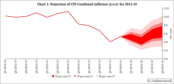 continue with overnight/term variable rate repos and reverse repos to smooth liquidity. Consequently, the reverse repo rate under the LAF stands adjusted to 6.25 per cent, and the marginal standing facility (MSF) rate and the Bank Rate to 8.25 per cent. Assessment 2. Since the first bi-monthly monetary policy statement of 2015-16 issued in April 2015, incoming data suggest that the global recovery is still slow and getting increasingly differentiated across regions. In the United States, the economy shrank in Q1 owing to harsh weather conditions, the strength of the US dollar weighing on exports and a decline in non-residential fixed investment. In the euro area, financial conditions have eased due to the European Central Bank’s (ECB) quantitative easing and a depreciating euro. There has, however, been some moderation in composite purchasing managers’ indices (PMI), economic sentiment and consumer confidence in April. In Japan, growth surprised on the upside in Q1, supported by private demand as business spending boosted inventories and personal consumption. For most emerging market economies (EMEs), macroeconomic conditions remain challenging due to domestic fragilities, exacerbated by bouts of financial market turbulence. China continues to decelerate in spite of monetary easing. The recent firming up of crude prices has reduced headwinds to growth for some energy exporters, while increasing them for importers. Even absent a decisive economic recovery or adverse geopolitical shocks, oil prices appear to be volatile. 3. Global financial markets have also been volatile, with risk-on risk-off shifts induced by changing perceptions of monetary policies in the advanced economies. Global currency markets continue to be dominated by the strength of the US dollar, with the G3 currencies reflecting the asynchronicity of their monetary policy stances. Volatility in global bond markets has increased with a number of factors at play: unwinding of European assets by investors due to the Greek crisis; rapidly changing expectations around the Fed’s forward guidance; sharp movements in crude prices; and market corrections due to changes in risk tolerance. 4. As anticipated, the Central Statistics Office has revised downwards its estimate of India’s gross value added (GVA) at basic prices for 2014-15 by 30 basis points from the advance estimates. Domestic economic activity remains moderate in Q1 of 2015-16. Agricultural activity was adversely affected by unseasonal rains and hailstorms in north India during March 2015, impinging on an estimated 94 lakh hectares of area sown under the rabi crop. Reflecting this, the third advance estimates of the Ministry of Agriculture indicate a contraction in foodgrains production by more than 5 per cent in relation to the preceding year’s level. Successive estimates have been pointing to a worsening of the situation, with the damage to crops like pulses and oilseeds – where buffer foodstocks are not available in the central pool – posing an upside risk to food inflation. For the kharif season, the outlook is clouded by the first estimates of the India Meteorological Department (IMD), predicting that the southwest monsoon will be 7 per cent below the long period average. This has been exacerbated by the confirmation of the onset of El Nino by the Australian Bureau of Meteorology. 5. What is clear is that contingency plans for food management, including storage of adequate quantity of seeds and fertilisers for timely supply, crop insurance schemes, credit facilities, timely release of food stocks and the repair of disruptions in food supply chains, including through imports and de-hoarding, need to be in place to manage the impact of low production on inflation. Inflation control will also be helped by limiting the increase in agricultural support prices. 6. Industrial production has been recovering, albeit unevenly. The sustained weakness of consumption spending, especially in rural areas as indicated in the slowdown in sales of two-wheelers and tractors, continues to operate as a drag. Corporate sales have contracted. The disappointing earnings performance could have been worse if not for the decline in input costs. Capacity utilisation has been falling in several industries, indicative of the slack in the economy. While an upturn in capital goods production seems underway, clear evidence of a revival in investment demand will need to build on the tentative indications of unclogging of stalled investment projects, stabilising of private new investment intentions and improving sales of commercial vehicles. In April, output from core industries constituting 38 per cent of the index of industrial production declined across the board, barring coal production. The sustained revival of coal output augurs well for electricity generation and mining and quarrying, going forward. There is some optimism on gas pricing and availability. The resolution of power purchase processes has to be expedited and power distribution companies’ financial stress has to be addressed on a priority basis. Some public sector banks will need more capital to clean up their balance sheets and support lending as investment revives. 7. Leading indicators of services sector activity are emitting mixed signals. A pick-up in service tax collections, sales of trucks, railway freight, domestic air passenger and air freight traffic could augur well for transport and communication and trade. On the other hand, the slowdown in tourist arrivals, railway traffic and international air passenger and freight traffic could affect hotels, restaurants and some constituents of transportation services adversely. The services PMI declined in April 2015, mainly on account of slowdown in new business orders. Community and personal services are likely to be held back by the ongoing fiscal consolidation. 8. In April, retail inflation measured by the consumer price index (CPI) decelerated for the second mon