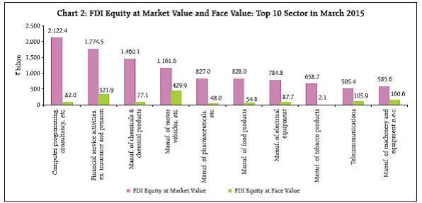The Annual Census on Foreign Liabilities and Assets (FLA) covers Indian resident companies which received Foreign Direct Investment (FDI) and/or made Overseas Direct Investment (ODI). This article presents the major findings of 2014-15 round of FLA Census covering 16,242 companies, of which, 14,296 companies (including foreign subsidiaries) reported inward investment. The results include inward and outward direct investment position at face value and market value and country/sector profile of FDI in India. Sale/Purchase (both domestic and export/ import) under Foreign Affiliates Trade Statistics (FATS) at aggregate level for overseas subsidiaries of ODI companies and sector-wise for foreign subsidiary companies in India are also presented.1 I. Introduction Direct Investment (DI) is a core component of cross-border capital flows, where an investor resident in another economy has lasting management interest in an enterprise in the recipient economy, by making an investment that gives control (50 per cent or more equity share) or a significant degree of influence (10 per cent or more equity share) over the management of the enterprise. A direct investor can be an individual, a group of related individuals, an incorporated or unincorporated enterprise (public or private), a group of related enterprises, government, trusts or other organisations that own enterprise(s). From a country’s balance of payments (BoP) point of view, surplus/deficit in current account are financed by other transactions including FDI, which leads to net change in asset ownership for the nation. Large changes in cross-border assets/liabilities have potential to lead to global imbalances and financial stability issues arising out of quicker transmission of localised stress conditions. Accordingly, the International Monetary Fund (IMF) has focused efforts on improving the availability and timeliness of cross-border investment data. These data collection efforts include Coordinated Portfolio Investment Survey (CPIS) and Coordinated Direct Investment Survey (CDIS), which are designed to improve the availability and quality of comparable cross-border portfolio and direct investment data, both overall and by immediate counterpart economy. In 2011, the Reserve Bank prescribed the mandatory Annual Return on Foreign Liabilities and Assets (FLA)2 for the Indian companies which have received FDI and/or made direct investment overseas in the previous year(s) including the latest year. In case of a FDI/ODI subsidiary company (i.e., single foreign investor holding is more than 50 per cent of total equity), information on exports, imports, domestic sales and purchases are also collected as a part of Foreign Affiliates Trade in Services (FATS) statistics. FLA census data are used as input in compilation of BoP, CPIS, CDIS and International Investment Position (IIP) statistics. Detailed data on partner country-wise inward and outward direct investment (debt and equity), at market prices, are made available on IMF’s web-site http://data.imf.org/CDIS for the CDIS participating countries, including India. While FLA census data contain comprehensive information on market value of foreign liabilities and assets of Indian companies arising on account of FDI, ODI and other investments, changes in outstanding position would be different from BoP flows during a year, as the former would also include valuation changes due to price and exchange rate movements. II. Coverage For the 2014-15 round of FLA census, 17,642 companies responded3, of which 16,242 companies had outstanding FDI/ODI in their balance sheet in March 2015. Of these 16,242 companies, 84.2 per cent had only inward FDI, 11.9 per cent had only ODI and 3.9 per cent had bi-directional direct investment (Table 1). The previous annual article in the series covered 17,211 companies that submitted FLA return for 2013-14, of which 15,778 companies had reported outstanding FDI/ ODI4. | Table 1: FLA Census 2014-15: Coverage | | (Number of companies) | | Category | Types of Company | Direct Investment | | Both Inward & Outward | Only Inward | Only Outward | | Unlisted Companies | Foreign Associate in India | 302 | 2,836 | – | | | Foreign Subsidiary in India | 210 | 10,466 | – | | | Others | – | 154* | 1,479 | | | Total | 512 | 13,456 | 1,479 | | Listed Companies | Foreign Associate in India | 92 | 135 | – | | | Foreign Subsidiary | 23 | 78 | – | | | in India | | | | | | Others | – | – | 467 | | | Total | 115 | 213 | 467 | | Grand Total | | 627 | 13,669 | 1,946 | | *: include Special Purpose Vehicle (SPV), Public-Private Partnership. | Of the 14,296 companies, which reported inward direct investment, 13,968 were unlisted and 10,777 were Indian subsidiaries of foreign companies. As such, at the aggregate level, FDI share in total equity of reporting companies was high at 74.0 per cent (63.6 per cent for financial companies and 76.2 per cent for non-financial companies). III. FDI and ODI: Face Value and Market Value In the FLA census, companies report information on equity capital both at face value as well as at market value. In case of listed companies, shares are valued at market price on the closing date of the reference period (i.e., end-March). Nearly 98 per cent of the companies that reported inward direct investment were unlisted. They were advised to use the Own Fund of Book Value (OFBV) method for market valuation, described in IMF’s CDIS Guide 2010. OFBV of equity investment is the share of non-resident equity holding in the net worth of the company (i.e., sum of paid-up equity capital, participating preference shares, reserves and surplus). The market value of FDI stock of the reporting companies in India increased by ₹4,567.1 billion (including investment flows and valuation changes) during 2014-15 and stood at ₹19,629.7 billion in March 2015, of which nearly 94 per cent was held in equity. On the other hand, the stock of ODI decreased by ₹260.7 billion dur