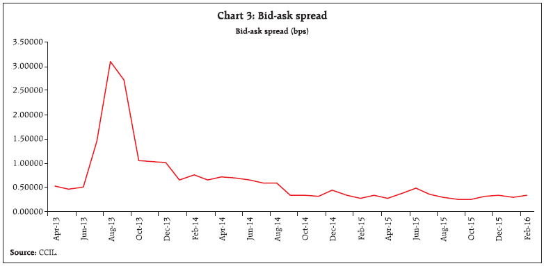 Real-time reporting of trade book and order book information leading to real time public dissemination as well. 29. Liquidity as measured by bid-ask spread shows that market liquidity dried up in second half of 2013. Market volumes, however, remained high. Since then, the bid-ask spread has compressed significantly suggesting improvement in liquidity (Chart 3). 30. Various measures have been taken to enhance the secondary market liquidity in Government bond market. Consequently, the average daily trading volume has increased more than six times in the last five years. During the taper tantrum, investors could exercise the option to sell securities in an orderly fashion and exit without market disruption. This improved credibility of Indian markets and the investors returned. We have tweaked short-sale limits, opened ‘when issued’ market and started buy-back operations based on the cash position of government. We have initiated switches that would ease redemption pressure as well as aid consolidation. We are also discussing with the Government a suitable market making scheme for illiquid and semi-liquid Government securities. There is, however, work still to be done. III. NDS-OM Version 2 Enhancements 31. NDS-OM, the RBI’s Anonymous Order Matching System for dealing in secondary market outright trades in G-Sec was launched in August 2005 based on an internal assessment of the need for a screen based dealing system as recommended by the R. H. Patil Committee appointed by the Reserve Bank of India. All trades concluded on NDS-OM flow within an STP framework to the CCIL, which acts as the CCP for all these trades, within the provisions of its bye-laws, rules and regulations. 32. From a relatively simple system when initially launched in August 2005, over time various functionalities have been added to NDS-OM. The application facilitates trading in all kinds of Central Government/State Government/Treasury Bill instrument in standard and non-standard (odd) market lots. It also facilitates trading in ‘When Issued’ (both re-issues and new issues). Other important system capabilities include short-selling and limit monitoring, stock balance monitoring, ‘When Issued’ limit monitoring, web-based module for client dealing, etc. The system has been widely accepted by market participants and its order matching segment now consistently accounts for 80 – 85 per cent of total G-Sec market volumes. The average daily volumes on NDSOM have increased from ₹ 50 billion in 2005-06 to over ₹ 400 billion in 2015-16. 33. As part of vision of the Reserve Bank of India for providing state-of-the-art infrastructure to market participants, the Reserve Bank has initiated an upgradation of the NDS-OM platform. The new system is expected to have faster through-put, enhanced functionalities, rich user interface, internationally compatible message formats, etc. Access of demat account holders to NDS-OM 34. One of the major factors said to be hampering trading interest in G-Sec is the difficulty in access to NDS-OM by non-institutional investor class. There is the gilt-account route but a large number of investors holding demat accounts cannot directly access NDS-OM. As already announced in the First Bi-monthly Monetary Policy Statement, 2015-16, the Reserve Bank is working, along with CCIL and depositories, to give demat account holders direct access to NDS-OM. This is expected to open up a large investor base, hitherto untapped, for investment in G-Sec. Even though G-Sec are globally institutional markets, this step is one of the most significant ones to facilitate retail investment in G-Sec. IV. Integration at the depository level 35. Currently though intra-depository transfers of G-Sec take place seamlessly between two beneficiary owners within a depository, there is no facility to transfer G-Sec seamless across depositories. Further, at present, there is no linkage between the RBI SGL system and the depositories. As a result, transfer of securities between SGL and demat accounts involves a manual process. The manual process involves delays and inhibits seamless movement of securities between SGL and demat accounts. As announced in the First Bimonthly Monetary Policy Statement, 2015-16, the Reserve Bank is working along with the depositories to implement a seamless transfer of securities among depositories and RBI SGL which would effectively lead to an integrated depository system for G-Secs. This would greatly facilitate transaction on the exchanges between a SGL-account holder and non-SGL account holder. V. New Products 36. Permitting introduction of new products in OTC as well as exchange traded space has always been a mutually consultative process between the Reserve Bank of India and the market participants. However, the approach adopted for introduction of interest rate options (IRO), I can, say, marks a fundamental departure. While the final guidelines are expected to be issued shortly, I can share that the guidelines would be truly principle-based and not prescriptive. It is proposed to permit a broad range of instruments including simple call and put options, caps, floors, collars and swaptions on both exchanges as well as in the OTC market. While the Working Group on Introduction of Interest Rate Options (Chairman: Prof. P. G. Apte) had recommended standardised contracts in the OTC market, the feedback received is that this may not be feasible. Another issue that has been flagged in the feedback relates to allowing users to hedge their foreign currency interest rate exposures using options on foreign currency interest rate benchmarks with Authorised Dealer banks in India on a back-to-back basis. This needs to be examined separately and may not be included as part of Rupee IRO guidelines. 37. Broadly, the same approach will be followed while finalizing guidelines on all new products – both OTC as well as exchange traded. VI. Regulation of Electronic Platforms 38. Electronic platform tradi