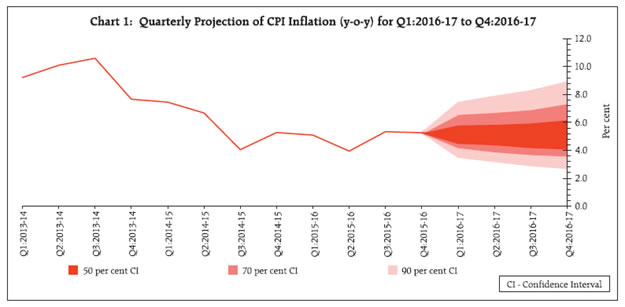 continue to provide liquidity as required but progressively lower the average ex ante liquidity deficit in the system from one per cent of NDTL to a position closer to neutrality. Consequently, the reverse repo rate under the LAF will remain unchanged at 6.0 per cent, and the marginal standing facility (MSF) rate and the Bank Rate at 7.0 per cent. Assessment 2. Since the first bi-monthly statement of April 2016, global growth is uneven and struggling to gain traction. World trade remains muted in an environment of weak demand. In the United States, growth was slow once again in Q1 because of contracting industrial activity and exports. Recent indicators of labour market activity have also weakened. In the Euro area, by contrast, Q1 GDP rose strongly on the back of robust consumer spending and recovering employment and business conditions. In Q2 so far, unemployment is falling, albeit slowly, and purchasing managers’ sentiment is upbeat. In Japan, growth surprised on the upside in Q1, with the economy escaping a technical recession, but industrial activity remains weak and deflationary pressures are building. 3. GDP growth slowed sequentially in China in Q1, with retail sales, industrial production and fixed investment showing signs of weakness in recent months amidst still rising levels of indebtedness among households and corporations. While macroeconomic stability is returning to some emerging market economies (EMEs), geo-political tensions and high volatility in financial markets impede the resumption of momentum, and the outlook remains challenging. The recent uptick in commodity prices is providing some relief to commodity exporters but political events could unsettle investor sentiment and consequently, capital flows could turn volatile again. For commodity importers, net terms of trade gains are moderating. 4. Global financial markets have recorded gains through Q2 of 2016, spurred by risk-on investor sentiment. Portfolio flows are returning, albeit hesitantly, to EME debt and equity markets. The firmness in crude prices that set in around mid-March has been supported in subsequent weeks by some temporary reductions in global supply. Gold prices remain elevated on safe haven demand. Other non-energy commodity prices remain stable with a hint of upside, while steel prices have firmed appreciably. Bond market yields across AEs have eased steadily, reflecting strong appetite in primary auctions in the face of the growing universe of negative yielding bonds. The US dollar continues to mirror changes in expectations of monetary policy action by the Fed. The yen and the euro have remained strong despite ultra-accommodative monetary policies. Among EMEs, some currencies are trading with an appreciating bias, with the biggest gains recorded by the currencies that had depreciated the most earlier. 5. On the domestic front, the recently released provisional estimate of gross value added (GVA) for 2015-16 marginally scaled down the annual growth rate to 7.2 per cent, on a deceleration of services sector activity in relation to the advance estimates. There was, however, a sequential pickup in activity in Q4 in line with expectations. As regards the current financial year, the India Meteorological Department (IMD) has forecast an above-normal and well-distributed south west monsoon as El Nino wanes – albeit with a slightly delayed onset. Realisation of this prediction is critical for the outlook for agriculture since reservoir levels have been depleted to 17 per cent of capacity – 40 per cent lower than the level a year ago. Even though rabi procurement was lower in April-May 2016 than a year ago, mid-May food stocks at 58 million tonnes were almost three times the norm for Q1. 6. The index of industrial production decelerated in 2015-16, mainly pulled down by weak manufacturing in an environment of subdued investment demand and weak rural consumption. In May 2016, the manufacturing purchasing managers’ index (PMI) remained subdued on account of slowing output and export orders. However, except for natural gas and crude oil, the core sector registered strong growth in April 2016 on account of a seasonal pick-up in industries like electricity, also supported by a low base. There are signs that corporate performance is improving. Available information on Q4 earnings suggests double digit growth in EBITDA levels for non-financial corporates. The Reserve Bank’s latest rounds of forward looking surveys indicate an improvement in the overall business situation, driven by a pick-up in capacity utilisation and in order books – both domestic and external. These developments have improved the expectation of business conditions in the first half of 2016-17. Public investment, especially in roads and railways, is gaining strength, though the continuing weakness in private investment is of concern. Demand conditions are likely to improve going forward; consumer confidence is seen as rising on improving expectations of employment and spending, with rural demand aided by a stronger monsoon. Rising capacity utilisation should prompt private investment. 7. Some high frequency indicators for April point to a firming recovery, although it is still uneven. Leading the upturn are cargo traffic at major ports, automobile sales (especially two-wheelers and threewheelers), commercial vehicle sales, passenger air and freight traffic, cement production and steel consumption. Abstracting from seasonal effects, this suggests that the expansion, especially in the service sector, is getting broad-based. On the other hand, railway freight traffic and passenger car sales have decelerated on sector-specific constraints. Purchasing managers in the services sector indicated slowing new business in May and subdued expectations of future activity. 8. The ebbing of inflation pressures for two consecutive months to March, after a period of steady rise, was interrupted once again in April. Retail inflation measured by th