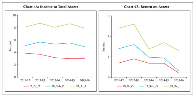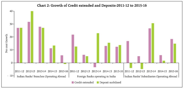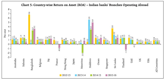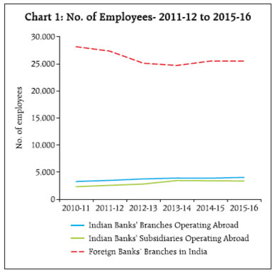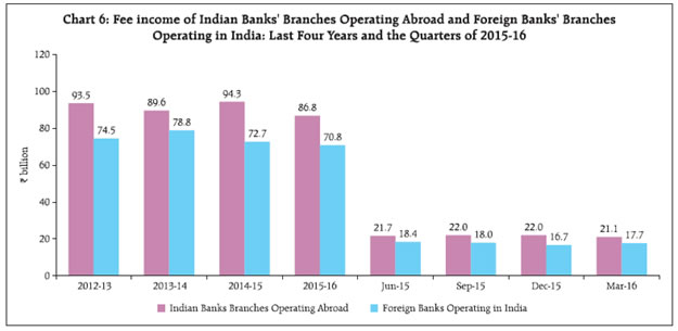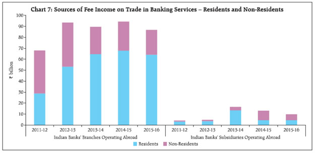 The annual survey on ‘International Trade in Banking Services’ (ITBS) provides dimensions of financial services rendered by overseas branches/subsidiaries of Indian banks and branches of foreign banks operating in India, based on explicit/implicit fee/commission charged to customers. The results of the 2015-16 round of ITBS survey are presented here. It covers the broad changes in branch/ employee/country profile of their banking business as well as service activities (both fund and non-fund based). The major trend in their balance sheet, income, expenditure and profitability are also discussed. Introduction International trade in banking services (ITBS) cover banking services provided to residents of an economy through local presence of (a) foreign banks and (b) foreign affiliates. It takes into account fundbased services (such as, deposit-taking, lending to firms, consumer finance) and a host of so-called non-assetbased services (such as, securities underwriting, local currency bond trading, foreign exchange trading, brokering, custody services, funds transfer and management services and financial consultancy/ advisory services). With increasing presence of both Indian and foreign banks to provide cross-border banking services, it is useful to assess their efficiency and other parameters. Also, the General Agreement on Trade in Services (GATS) under the World Trade Organisation (WTO) inter alia, necessitated the need of consistent and comparable statistics on ITBS for assessing the financial services sector liberalisation. The ITBS survey, conducted annually by the Reserve Bank since 2006-07, is intended to provide information on financial services provided locally through commercial presence [i.e., Mode-3 of supply as per the Manual of Statistics of International Trade in Services (MSITS)] for the banking sector. These cover overseas branches/subsidiaries of Indian banks operating abroad and foreign banks operating in India. As per IMF’s Balance of Payments and International Investment Position Manual: Sixth edition (BPM6), subsidiary is a direct investment enterprise (DIE) over which direct investor is able to exercise control, which is assumed to exist if the investor has more than 50 per cent share in total equity of the enterprise. The 2015-16 survey round covered 201 overseas branches and 249 overseas subsidiaries of Indian Banks and 317 branches of foreign banks operating in India. The salient features along with the recent trends in the international trade in banking services in the last few years are analysed here1. As all scheduled commercial banks with cross-border presence responded to the survey, the results present census position though the data for the latest year remain provisional. I. Branch Distribution Cross-border presence of Indian banks has increased over the years in line with the growing demands from cross-border trade and other activities. The number of Indian banks’ branches operating abroad stood at 201 as on March 2016 (from 163 four years ago), of which, the highest number of branches were located in the United Kingdom (33), followed by Hong Kong (19), Bahrain (18), Singapore (17), United Arab Emirates (13) and Sri Lanka (12). Public sector banks dominated the overseas presence of Indian banks, where State Bank of India had the largest overseas presence (76 branches in 21 countries) followed by Bank of Baroda (47 branches in 14 countries). The Indian banks operating abroad added 23 more overseas branches while foreign banks added 4 more branches in India in 2015-16. The employee strength of Indian banks’ branches operating abroad increased to 3.7 per cent in 2015-16 after a marginal decline in 2014-15 (Table 1). The total number of employees of foreign banks’ branches operating in India increased by 4.4 per cent in 2015-16 as compared to 3.3 per cent in the previous year. Indian banks’ branches operating abroad employed 63.1 per cent of employees from local sources, 33.9 per cent from India and remaining 3.0 per cent from other countries. On the other hand, 99.4 per cent of foreign banks employees working in India were local (Chart 1,Table 2). II. Banking Business The business of Indian banks’ branches operating abroad grew at a slower pace in 2015-16 than in the previous year and their consolidated balance sheet increased by 4.0 per cent as compared with 13.5 per cent witnessed in 2014-15. On the other side, the business of foreign banks’ branches operating in India showed improvement and their consolidated balance sheet increased by 9.0 per cent in 2015-16 on top of 2.8 per cent growth a year ago. Since March 2012, the combined balance sheet of Indian banks’ branches operating abroad recorded 57.5 per cent increase in US dollar terms whereas the combined balance sheet of foreign banks operating in India increased by around 9.0 per cent. The consolidated balance sheet of Indian banks’ subsidiaries operating abroad grew at 20.5 per cent in 2015-16 (1.8 per cent in 2014-15).  | Table 1: No. of Branches and Employees – 2011-12 to 2015-16 | | Category | 2011-12 | 2012-13 | 2013-14 | 2014-15 | 2015-16 | | | No. of Branches | | Indian Banks’ Branches Operating Abroad | 163 | 170 | 170 | 178 | 201 | | Indian Banks’ Subsidiaries Operating Abroad | 158 | 184 | 235 | 235 | 249 | | Foreign Banks’ Branches in India | 309 | 316 | 307 | 313 | 317 | | | No. of Employees | | Indian Banks’ Branches Operating Abroad | 3,489 | 3,761 | 3,915 | 3,897 | 4,040 | | Indian Banks’ Subsidiaries Operating Abroad | 2,580 | 2,818 | 3,469 | 3,424 | 3,382 | | Foreign Banks’ Branches in India | 27,342 | 25,118 | 24,703 | 25,519 | 26,642 | As lending continued to be a major business of Indian banks’ overseas branches, the share of credit in their total assets stood at 58.4 per cent in March 2016 vis-a-vis 46.2 per cent for foreign banks operating in India. However, foreign banks operating in India financed more operations through deposit mobilisation 