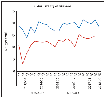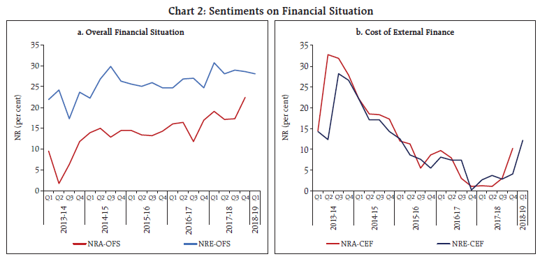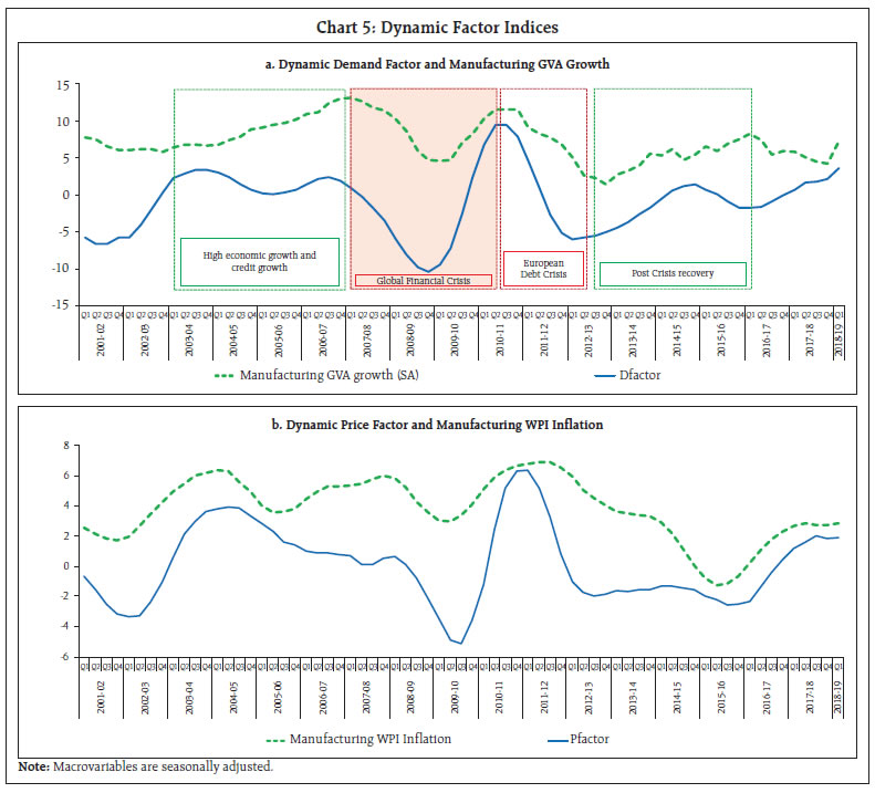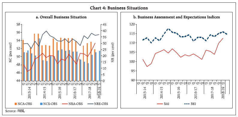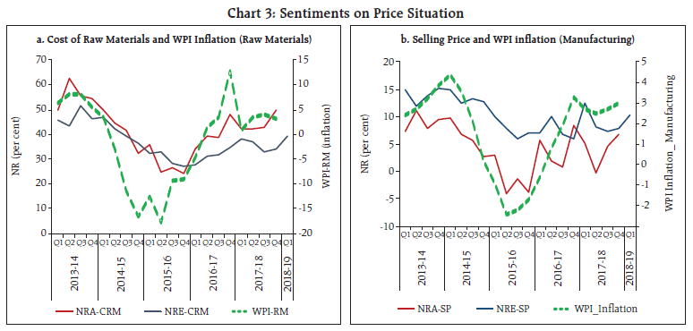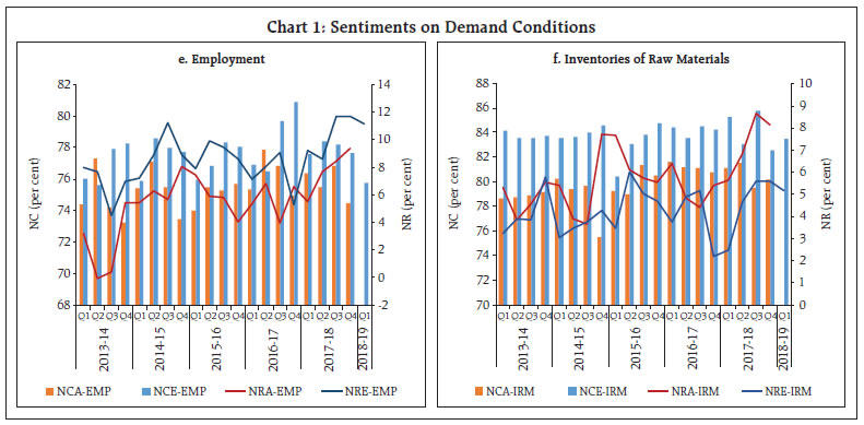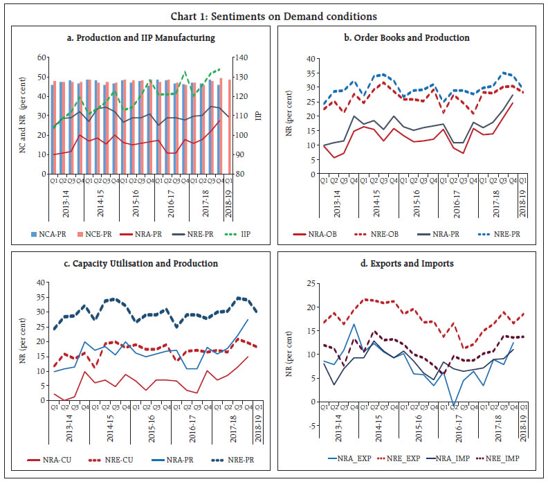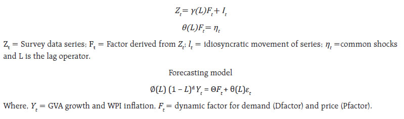 This article presents the major findings of the industrial outlook survey (IOS) of the manufacturing sector conducted during 2017-18. The survey revealed a steady improvement in demand conditions with a stable outlook. The sentiments on input costs, especially of raw materials, remained a concern; leading to limited pass-through as reflected by upturn in respect of selling prices. Dynamic factor indices derived from the survey data were found to be useful in tracking the movements of the gross value added (GVA) growth and wholesale price index (WPI) inflation of the manufacturing sector. Introduction Industrial / business outlook surveys are extensively employed, particularly by central banks, to capture snapshots of sentiment on current activity conditions in a forward-looking manner so as to follow and analyse economic developments on a more frequent basis with information that has the advantage of being instantaneously accessible, never being subjected to revision (Hansson and Jansson, 2003; Kevin and Rosewall, 2015; Amstad and Etter, 2000). The Reserve Bank of India (RBI) has been an early mover among emerging market economies (EMEs) in this genre of surveys. Its flagship industrial outlook survey (IOS) goes back to 1998 and the continuum of survey rounds conducted since then yields a rich information set of 81 data conglomerations of quarterly frequency over 20 years. Aggregating the responses received, the IOS produces a business assessment index (BAI), which encapsulates current conditions and a business expectations index (BEI), which summarises the outlook for the quarter ahead. Empirically, it has been shown that the BEI has statistically significant explanatory power in explaining the behaviour of manufacturing activity in India (Lekshmi and Mall, 2015; RBI June 2017). Against this backdrop, the motivation driving this article is two-pronged. First, it seeks to consolidate and distil the key messages emanating from sentiments in the manufacturing sector in 2017-18 that were polled in four rounds of the survey conducted during the year. The focus of interest is to assess by hindsight how closely the survey reflected underlying activity in a year, marked by inflexions in the evolution of GVA in manufacturing and gross fixed capital formation alongside an acceleration in corporate sales growth and a pick-up in capacity utilisation. Second, the article attempts to bring greater precision in predicting the near-term outlook by addressing limitations of the BEI such as time-invariant weighting. Drawing on these efforts, it proposes a dynamic factor index (DFI) which improves forecasting performance in respect of the BEI, at least in nowcasting manufacturing GVA growth and manufacturing WPI inflation. The rest of the article is structured in five sections. Section 2 examines the cross-country experience in business tendency / industrial outlook surveys with a view to place the RBI’s IOS against the perspectives of international practices. Section 3 presents an overview of the stylised facts on key parameters of manufacturing conditions that were surveyed in the IOS during 2017-18. Section 4 sets out an alternative approach to forecast/ nowcast manufacturing GVA growth, with efficiency and stability gains, outperforming the BEI in predictive power. Section 5 concludes with some policy perspectives. 2. Cross-Country Practices Business tendency / sentiments / outlook / expectations surveys are regularly conducted in developed economies, including, the USA, the UK, Japan and other member countries of the Organisation for Economic Cooperation and Development (OECD), transition economies of Central / Eastern Europe and in the countries of the Asia-Pacific region. In many countries, multiple surveys to gauge the assessment of underlying macroeconomic and financial conditions by businesses themselves are prevalent (Table 1). International agencies, such as, the OECD, the European Union, the Asian Development Bank (ADB) and the United Nations Economic and Social Council for Asia and Pacific (ESCAP), have been working towards harmonisation of these surveys in order to facilitate co-ordination and cross-country comparison. Indicators available from such surveys are found to be useful in the construction of lead indicators for business cycle analysis (Hansson and Jansson, 2003) and for developing summary gauges of the short-term outlook. | Table 1: Cross Country Experience of Industrial Outlook Surveys | | Business Tendency Survey Parameters | Australia | Brazil | Canada | France | Germany | India | Indonesia | Japan | New Zealand | South Africa | United Kingdom | United States | | Conducted since year | 1966 | 1995 | 1998 | 1959 | 1961 | 1998 | 2002 | 1957 | 1961 | 1986 | 1977 | 1968 | | Composite Indicator (BEI) | ✓ | ✓ | ✓ | | | ✓ | ✓ | ✓ | ✓ | ✓ | ✓ | ✓ | | Capacity Utilisation | ✓ | ✓ | | ✓ | ✓ | ✓ | ✓ | ✓ | ✓ | ✓ | ✓ | ✓ | | Employment | ✓ | ✓ | ✓ | | | ✓ | ✓ | ✓ | ✓ | ✓ | | ✓ | | Inventory Finished Goods | ✓ | ✓ | | | | ✓ | ✓ | ✓ | ✓ | ✓ | | | | Order books | ✓ | ✓ | | ✓ | ✓ | ✓ | ✓ | | ✓ | ✓ | ✓ | | | Production | ✓ | ✓ | | | | ✓ | ✓ | | ✓ | ✓ | | | | Selling price | ✓ | | ✓ | | | ✓ | | ✓ | ✓ | ✓ | | | | Source: OECD statistics | Most inflation targeting countries1 have maximum coverage of demand and price parameters in their surveys which are considered worthy of national representation. The iconic manufacturing business outlook survey conducted by the Philadelphia Federal Reserve Bank is intended to capture manufacturing conditions in the north eastern USA, but it is widely regarded as reflecting a country-wide assessment2. Apart from central banks, the national statistical offices also conduct business tendency surveys. In Brazil, the Survey of Manufacturing Industry has several similarities with the Indian experience. It is a qualitative survey conducted monthly. Its 