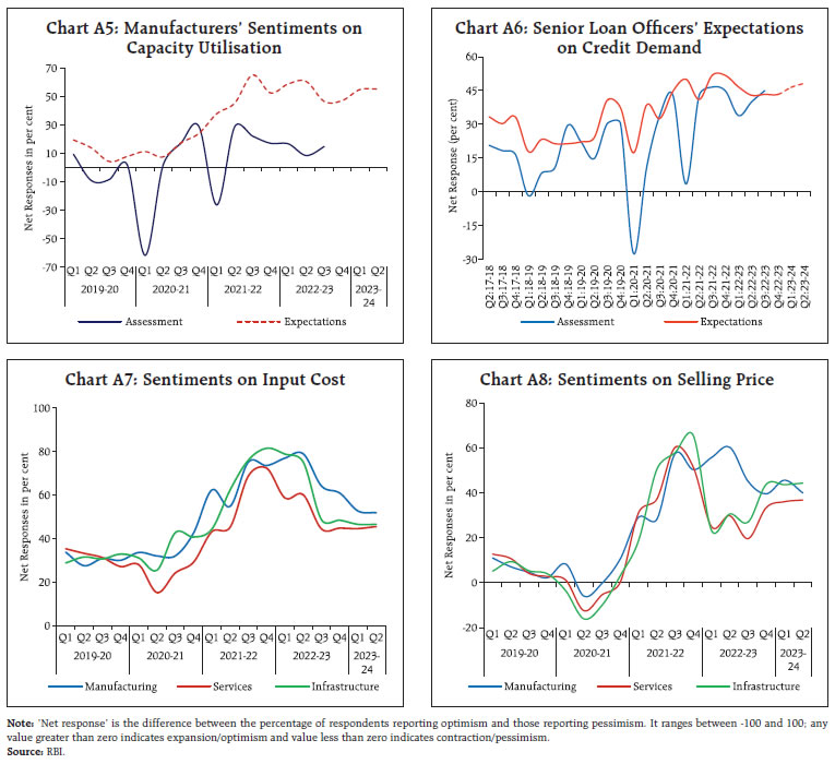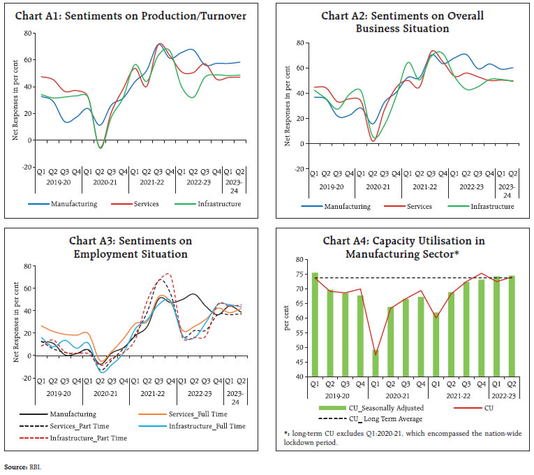 Firms are upbeat on overall business conditions which are expected to sustain expansion through the first half of 2023-24 (Chart A1 and A2). -