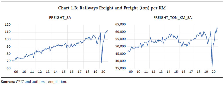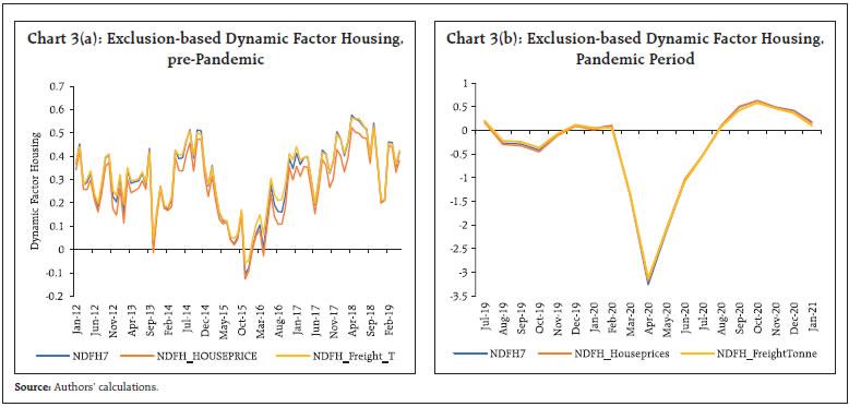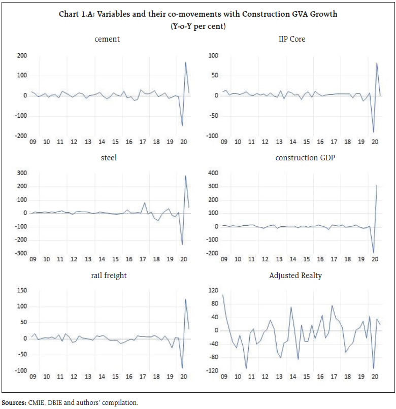 by Dipak R. Chaudhari, Akanksha Handa, Priyanka Upreti, and Saurabh Ghosh^ The realty sector plays a crucial role in India in terms of employment generation, savings in physical form, contribution to the country’s GVA, and even as an early warning indicator. However, low-frequency traditional data and the lag in data releases make its active use in policy-making difficult. We aim to bridge this challenge by constructing a realty sector activity indicator using a variety of high-frequency indicators and a dynamic factor model. Us ing this indicator, we quantify the impact of realty sector developments on economic activity, its first and second-rounds effects across business cycles. Introduction The realty sector plays a pivotal role in the Indian economy. This sector provides the second-largest employment, after the agriculture sector, for both skilled and unskilled labourers (84 per cent share of informal workers). Moreover, the realty sector produces employment opportunities to a large fraction of immigrant workers from several parts of the country (GOI, 2021). The realty sector is also linked to upstream and downstream industries, creating second-round positive spillover effects on them. In addition, the realty sector1 provides an essential avenue for savings in physical form. The average household in India holds 77 per cent of its total assets in real estate which comprises of constructions for residential purposes, farm and non-farm activities, recreational facilities, rural and urban land, etc. (Ramadorai, 2017). The high level of real estate holdings by Indian households could indicate their need for real estate investments in addition to usual consumption needs. The available literature from similar emerging market economies (EMEs) suggests that construction activities have a positive relationship with economic growth, however, it may be a contemporaneous, lead or lagged association. For instance, Berk and Bicen (2017) examined the relationship between investment in the construction sector and gross domestic product (GDP) growth and found that the former leads to economic growth. Ahmad et al. (2019) examined the interactions between the construction sector and urbanisation, energy consumption, economic growth, and carbon emissions for the Chinese economy and found that the construction sector leads to urbanisation, which is a key driver of economic growth. Hung et al. (2019) analysed the linkages of the construction sector with the total output of the economy using a multi-regional input-output table for Hong Kong and found similar results. In the Indian context, there exists limited literature that has examined the relationship of construction activities with economic growth. Tiwari (2011) studied the relationship between construction activity and economic growth and found the existence of bidirectional causality between economic growth and construction activities. Kumar and Choudhary (2014) empirically investigated the effect of housing investment on GDP and found a strong positive correlation among housing, GDP and employment. Using a production function based approach, Mallick and Mahalik (2010) found a positive impact of construction on economic growth. Since a significant portion of the realty sector and its feedback effects relate to the informal sectors in India, data availability issues pose a considerable challenge to pre-emptive policy research in this domain. We aim to address this gap by using both conventional and unconventional data sources. In this vein, we start with a preliminary assessment of available high-frequency indicators that could be related to the real estate sector in India. Second, we attempt to find a latent common factor underlying these series that represent realty sector developments and construct a dynamic factor for housing (DFH), which can be used for policy research. Finally, we run empirical tests using DFH, construction gross value added (GVA), and GVA net of construction to evaluate the efficacy of DFH in policy-research. The rest of the study is organised as follows: Section II takes a deep dive into the realty sector with the help of conventional and unconventional high-frequency data. Section III explains data dimension reduction, nowcasting and other empirical findings. Section IV concludes the study and discusses policy implications. II. Data and Trends India is a services-driven economy, with the services sector accounting for more than 60 per cent of total GVA. The construction sector, which accounts for around 8 per cent of total GVA, recorded the steepest decline, by around 50.3 per cent as sales and new launches contracted during the first quarter of 2020-21, primarily due to lockdown and sluggishness of consumer sentiments during pandemic period (MOSPI, 2020). Consumer Pyramid database of Centre for Monitoring Indian Economy (CMIE) indicates that unemployment figures for the construction sector were amongst the highest in various industries during the lockdown. Another component of services i.e., financial, real estate and professional services, witnessed a decline in the first and the second quarter of 2020-21 as compared to the same periods in 2019-20. However, there are two problems with the conventional dataset: (a) it is of quarterly frequency, and (b) it is difficult to gauge the direct and indirect impact of an adverse-shock or slowdown in the realty sector on the overall economic data, especially for identifying the impact on the supply side vis-à-vis the demand side. We, therefore, considered a slew of available high-frequency indicators that are related to the realty sector in India. These include variables such as housing prices, credit and profits of real estate companies that are mostly sourced from CEIC. Available corporate performance data (from CMIE Prowess dataset) and stock market indices (Bloomberg Data) indicate mixed evidence. While the former shows signs of deterioration, the realty stock indices have sur