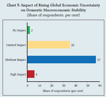 About three fifths of the respondents expected high/medium impact of global economic uncertainty on domestic macroeconomic stability (Chart 5). -