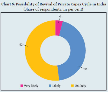 Around half of the panellists perceived that revival of private capex cycle is unlikely to materialise in the coming one year (Chart 6).
