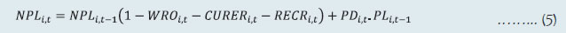1.1 Scheduled Commercial Banks (a) Banking stability indicator (BSI) and map The banking stability map and indicator present an overall assessment of changes in underlying conditions and risk factors that have a bearing on the stability of the banking sector during a period. The six composite indices represent risk in six dimensions - soundness, asset quality, profitability, liquidity, efficiency and sensitivity to market risk. Each composite index is a relative measure of risk during the sample period used for its construction, where a higher value would mean higher risk in that dimension. The financial ratios used for constructing each composite index are given in Table 1. Each financial ratio is first normalised for the sample period using the following formula: where Xt is the value of the ratio at time t. If a variable is negatively related to risk, then normalisation is done using 1-Yt. Composite index of each dimension is then calculated as a simple average of the normalised ratios in that dimension. Finally, the banking stability indicator is constructed as a simple average of these six composite indices. Thus, each composite index and the overall banking stability indicator takes values between zero and one. | Table 1: Ratios used for constructing the Banking Stability Indicator and Map | | Dimension | Ratios | | Soundness | CRAR # | Net NPAs to Capital | Tier 1 Capital to Assets # | | | Asset Quality | Gross NPAs to Total Advances | Provisioning Coverage Ratio # | SMA-1 and SMA-2 Loans to Total Advances | Restructured Standard Advances to Standard Advances | | Profitability | Return on Assets # | Net Interest Margin # | Growth in Earnings Before Provisions and Taxes # | Interest Margin to Gross Income # | | Liquidity | Liquid Assets to Total Assets # | Liquidity Coverage Ratio # | Non-Bank Advances to Customer-Deposits | | | Efficiency | Cost to Income | Business (Credit + Deposits) to Staff Expenses # | Staff Expenses to Operating Expenses | | | Sensitivity to market risk | RWA (market risk) to Capital | PV01 of HFT and AFS Investments to Total Capital | Total Net Open Position in Forex to Total Capital | | | Note: # Negatively related to risk. | (b) Macro stress test Macro stress test evaluates the resilience of banks against adverse macroeconomic shocks. It attempts to assess the impact of such shocks on the capital ratios of banks1 over a one-and-half to two-year horizon, under a baseline and two adverse scenarios. The test encompasses credit risk, market risk and interest rate risk in the banking book. The salient features are as below: I. Macro-scenario design: The test envisages three scenarios - a baseline and two hypothetical adverse macro scenarios. While the baseline scenario is derived from the forecasted path of select macroeconomic variables, the two adverse scenarios are derived based on hypothetical stringent stress scenario narratives and by performing simulations using the following Vector Autoregression with Exogenous Variables (VARX) model, with GDP growth, CPI inflation, repo rate and lending spread as the endogenous variables and US GDP growth and US-VIX as exogeneous variables. II. Projection of key financial variables: Slippage ratio, interest income and interest expense are projected at bank-level using panel regression models for each bank group. GNPA ratio and provision are projected using structural models. Non-interest income [comprising of (a) fee income and (b) other operating income excluding fee income] and non-interest expense are projected based on assumed growth rate of these variables under each scenario. (i) Projection of slippage ratio: The quarterly slippage ratios at bank level are projected using the following panel regression model; Zi,t is the quarterly slippage ratio of bank i during quarter t, Xt is a vector of macroeconomic variables including lending spread and GDP growth, μ'i represents bank-specific fixed effects, λ'it represents adjustments for specific quarters and ε'i,t is an i.i.d. error term. Subsequently, quarterly slippage ratios, Ẑi,t's are computed based on first differences of the regression equation (2) as, (ii) Projection of gross loans and advances: Bank level gross loans and advances are projected by applying growth rate equivalent to nominal GDP growth as, where Li,t represents the gross loans and advances of bank i at the end of quarter t, and gt represents the nominal GDP growth rate during quarter (t-1, t). (iii) Projection of non-performing loans (NPL) or GNPAs: Bank-level GNPAs are projected using the equation, where NPLi,t represents the stock of GNPA of bank i at the end of quarter t, WROi,t, CURERi,t and RECRi,t are write-off, upgradation and recovery rates of bank i during the quarter t respectively, PDi,t is the probability of default (slippage ratio) projected in (3) and PLi,t-1 is the stock of performing loans at the end of quarter t-1. (iv) Projection of performing loans (PL): The stock of performing loans for bank i at the end of quarter t, PLi,t is projected as, (v) Projection of provisions: Provisions of bank i for quarter t are projected as follows, where provisioning coverage ratio (PCR) is assumed at 75 per cent. The loss given default (LGD) during quarter t is derived based on the model of Frye and Jacobs (2012), as below and the parameter k is derived as, PD* and LGD* are long-term average PDs and LGDs and Φ represents the cumulative normal distribution function. (vi) Projection of interest income and expenses: Interest income (as share of interest-earning assets) and interest expenses (as share of interest-bearing liabilities) are modelled as functions of macroeconomic variables (GDP growth and call rate) and bank fixed effects with structure similar to equation (2). Bank-wise projections of these ratios are applied to derive shocks to yield on assets and cost of funds for each bank. (vii) Projection of market risk: Market risk is estimated by applying MTM revaluation of bond exposures 