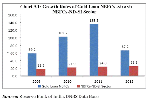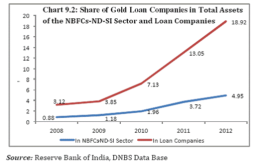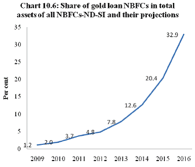 The financial performance of the gold loans NBFCs and the current level of their borrowings from the banking system are not of a significant concern. There appears to be no immediate systemic implications in terms of domestic financial stability due to the interconnectedness of gold loans NBFCs and banking system. It was empirically tested that increase in gold loans extended by NBFCs and banks does not impact significantly the gold prices in India both in long run and short run. However, if the present rate of growth in their bank borrowings is unchecked, gold loans may become significant portion in the portfolio of banks in the medium term. There were also instances of regulatory violations in the manner in which resources are raised through debentures by the gold loan NBFCs.