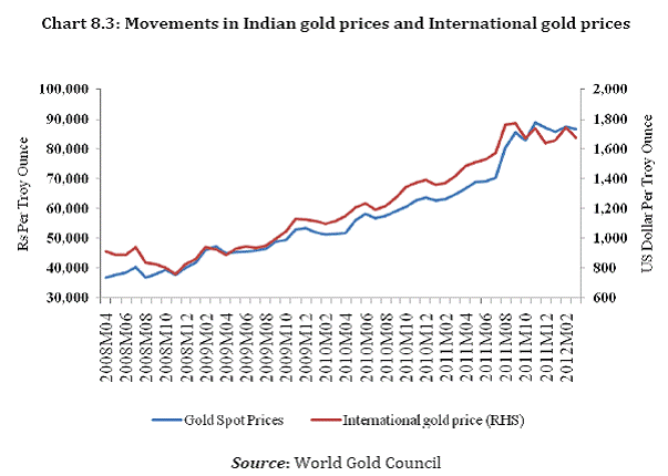 1.1 Given the uncertain global economic situation and its impact on the Indian exports, there is a clear need to reduce the CAD. Large and sustained gold imports, when the Indian exports growth is not robust, are a strain on the external sector's management. The maneuverability available to control oil imports is very limited. Viewed from the fact that India has a large appetite for gold, it is desirable that the economy needs to moderate the demand for gold imports to bring down the CAD to a more sustainable level. (Para 3.38)