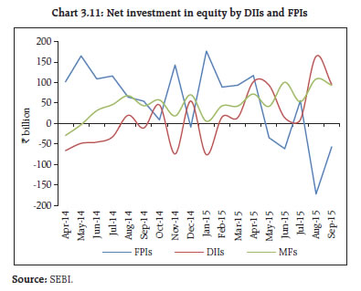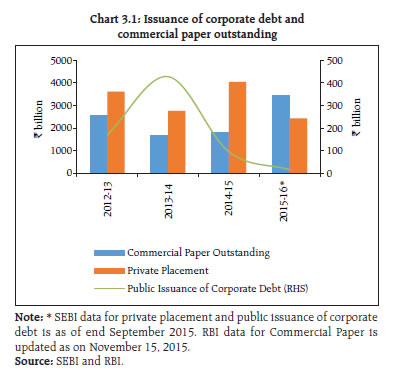 3.36 In the context of Indian debt oriented MFs, the AUM of debt oriented schemes exposed to corporate bonds downgraded during last six months formed only about 1.6 per cent of their total AUM as on September 30, 2015. The highest level of proportion of exposure to downgraded bond is about 9 per cent for one asset management company (AMC) and for the rest of the AMCs the exposure of their debt oriented funds to downgraded bonds was in the range of 1 to 3 per cent. Thus, such exposure levels are not expected to assume systemic proportions, unless the rate of credit downgrades or corporate defaults increase unexpectedly. Product labelling in mutual funds 3.37 SEBI’s framework on ‘product labelling’ is meant to address the issues of mis-selling and provide investors an easy understanding of the kind of product/scheme they are investing in and its suitability to them. Accordingly, MFs are required to ‘label’ their schemes on the parameters such as nature and objective of scheme (wealth creation / regular income, debt / equity or hybrid) and indicative time horizon (short/ medium/ long term). The level of risk was required to be depicted by colour code boxes (blue where principal is at low risk, yellow for medium risk and brown for high risk). In order to further strengthen the framework for product labeling by MFs, SEBI in April 2015 increased the risk categories for labeling of mutual fund schemes to five, adding ‘moderately low’ and ‘moderately high’ labels. Further, with effect from July 01, 2015, the depiction of risk using colour codes have been replaced by pictorial meter named “Riskometer” as the visual indicator of risk can be more effective in conveying the message and it is also simple and self-explanatory which investors can easily comprehend18. | Table 3.1: Exposure of MFs to corporate bonds during April – September 2015 | | (Amount in ₹ Billion) | | Assets under management (AUM) of Mutual Funds | 12331.97 | | Assets under management (AUM) of Debt Oriented Schemes | 7929.10 | | Percentage of AUM of Debt oriented scheme /Total AUM | 64 | | Total Exposure of Debt oriented schemed to Corporate Bonds | 3124.82 | Percentage of Exposure of Debt oriented schemes to Corporate bonds / AUM of Debt oriented schemes | 39 | Exposure of Debt Oriented Funds to Downgraded Corporate Bonds (for Debt Oriented Funds value of assets invested in corporate Bonds which have been downgraded during the period) | 128.17 | | Percentage of Downgraded corporate bonds to Total AUM of Debt oriented schemes | 1.62 | | Source: SEBI. | Risk management framework for national commodity derivatives exchanges 3.38 The commodity derivatives market has seen a rapid growth in India since 2003, when electronic trading platforms were introduced in the forms of modern de-mutualised exchanges. The last FSR covered some of the issues and challenges in strengthening the commodity markets in India, given the fragmentation in the ‘spot’ markets and other legal and tax related aspects. Pursuant to the announcement in the Union Budget 2015-16, the Forward Markets Commission (FMC), the erstwhile regulator of commodity derivatives in India, has been merged with SEBI on September 28, 2015. Subsequent to this merger, SEBI has issued guidelines on the comprehensive risk management framework19 to align and streamline the risk management framework across national commodity derivatives exchanges in India. This framework will be operationalised latest by January 01, 2016. SEBI has also prescribed risk management norms for regional commodity derivatives exchanges20 which are to be implemented latest by April 01, 2016. SEBI framework for fund raising by start-ups 3.39 India has witnessed a rapid growth in setting up of technology based ‘start-up’ companies in recent years and is among the top ranking countries in the globalised start-up ecosystems. Most of these start-ups have innovative business models and need huge risk capital in the initial years. As their valuation models vary depending upon the technology and types of service involved, they are analysed by the specialised institutional investors and the risk-return profiles may not be generally understood by common investors. Given their limitations in raising funds, these companies tend to tap foreign capital markets. Therefore, it is a challenge to provide the right incentives, including a simplified regulatory regime, for start-ups to raise funds from domestic sources even while shielding the small investor from the potentially higher risk of failures, as compared to companies which have already grown larger and have a reasonably long track record to refer to. 3.40 Accordingly, SEBI has simplified the framework for capital raising by technological start-ups and other companies on the Institutional Trading Platform (ITP) with effect from August 15, 2015. The framework stipulates eligibility criteria, composition of capital, disclosure, allocation of funds to institutional investors and discretionary allotment (Box 3.5). Stress testing of liquid fund and money market mutual fund schemes 3.41 Liquid /Money Market Mutual Funds (MMMFs) are generally exposed to various risks like short term interest rate risk, liquidity risk and credit risk. As on September 30, 2015, the AUM of liquid / MMMFs stood at ₹1,785 billion which is approximately 15 per cent of the total AUM. The International Organization of Securities Commissions (IOSCO), in its report on Policy Recommendations for Money Market Funds, made 15 key policy recommendations relating to eight reform areas. For effective liquidity management, periodical stress tests of MMMF scheme’s portfolio has been recommended based on various scenarios. Box 3.5: SEBI Framework for fund raising by start-ups The Institutional Trading Platform (ITP) is accessible to companies which are intensive in their use of information technology, intellectual property, data analytics, bio-technology, nano-technology to provi