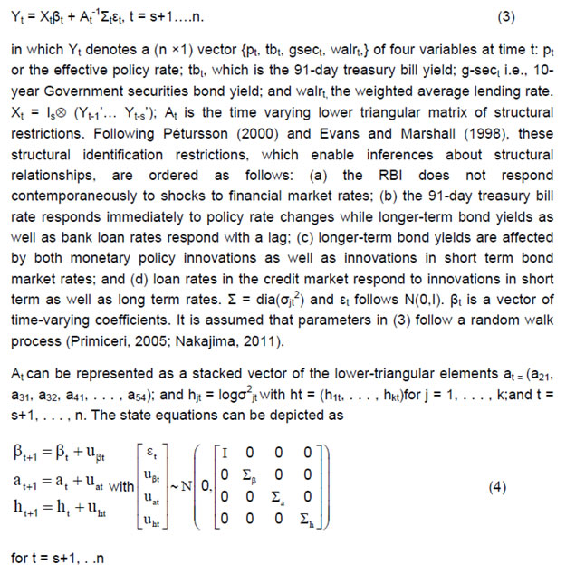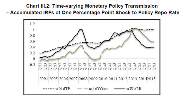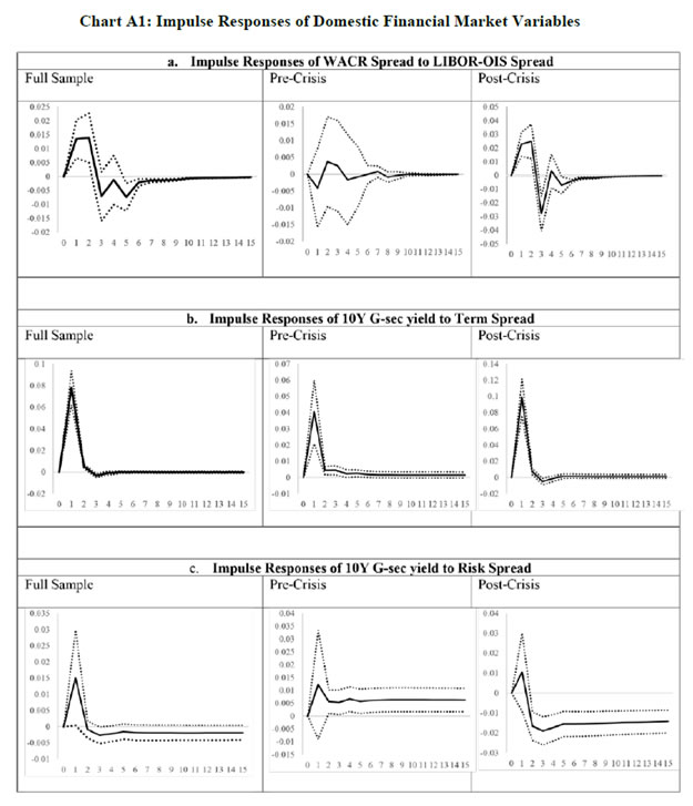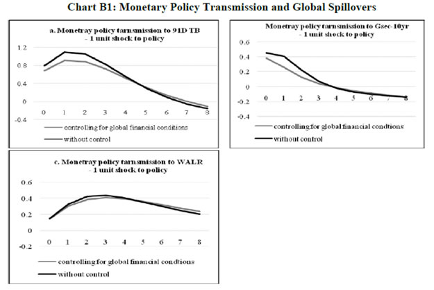 Press Release RBI Working Paper Series No. 03 Global Spillovers and Monetary Policy Transmission in India @Michael Debabrata Patra, Sitikantha Pattanaik, Joice John and Harendra Kumar Behera Abstract Do global spillovers clog transmission channels of monetary policy through domestic financial markets? Drawing on stylised facts and using a dynamic factor model to develop an indicator of global spillovers (IGS), a time-varying parameter vector autoregression (TVP-VAR) model results indicate that monetary policy transmission through the money market is complete even in the face of global spillovers. In the debt market, global spillovers affect transmission and can even produce overshooting and over-corrections, but domestic factors such as market microstructure have a stronger influence. In the credit market, spillovers have no statistically significant influence on transmission to lending rates. Asset quality of banks and financial deepening play a more important role. JEL Classification: C54; E52; E58 Key Words: Global Spillovers, Monetary Policy Transmission, Dynamic Factor Model, M-GARCH, Time-Varying Parameter VAR With the world’s largest economies setting divergent courses for monetary policy, will spillovers from this transatlantic schism imprison interest rates in emerging market economies (EMEs) like India that are reasonably well integrated into the global financial cycle? Will it be possible for these countries to conduct independent monetary policy as capital and asset prices are stirred up by the core financial centres? These questions form the theme of this paper. We ask them in the context of a rapidly proliferating strand in the empirical literature that is finding increasing evidence of significant spillovers effects not just for fixed income markets and longer-term interest rates (Obstfeld, 2015; Sobrun and Turner, 2015; Turner, 2014; Miyajima et al., 2014) but for short-term interest rates and policy rates as well (Hofman and Takats, 2015; Edwards, 2015; Takats and Vela, 2014; Gray, 2013). Furthermore, as this evidence accumulates, the channels of propagation are becoming clearer and as a consequence, more real and present for open EMEs – global economic and financial integration (Hofman and Takats,2015); investor arbitrage playing out through both EME allocations in globally mobile funds and foreign participation in local markets (Barroso, Kohlscheen and Lima, 2014); foreign currency denominated credit (He and McCauley, 2013); and increased sensitivity of EME policy makers to volatility in capital flows and exchange rates. While considerable heterogeneity is found in these effects across EMEs (Chen et al., 2015), the constraining effects of spillovers on domestic monetary policy is observed irrespective of the exchange rate regime (Rey, 2015). The persuasiveness of this strand notwithstanding, there is a contrarian view too – why wouldn’t there be one? In the long run we are all economists2 - that seems to be standing up to the tests of the episodes of volatility in 2015 relative to the ‘taper caper’3. It is argued that the concept of monetary policy independence needs to distinguish between the ability to set monetary policy independently and the willingness to do so, the latter implying the extent to which external developments enter policy reaction functions of EME central banks and the coefficients attached to them. The effects of spillovers or contagion when appropriately measured seem to be less severe for EMEs than generally assumed or observed in financial phenomena such as co-movements in interest rates across borders (Disyatat and Rungcharoenkitkul, 2015). First, in the taper caper and its aftermath, several EMEs allowed exchange rate adjustments, some even large and apparently disruptive, but this enabled them to set domestic interest rates to domestic conditions. The exchange rate change was a measure of the importance of external developments in their reaction functions and their willingness to accommodate them rather than a loss of monetary policy independence. By the same logic, several EMEs are regarded as engaged in pursuing exchange rates that reflect domestic goals – competitive depreciations. Both interest rates and exchange rates can be regarded as instruments that serve domestic objectives. Secondly, some EMEs with large reserves actively intervened to stem turmoil in their foreign exchange markets and by all counts succeeded, effectively preventing the trilemma from breaking down to a dilemma a la (Rey, 2015) and setting in motion what has been termed as quantitative tightening (QT) that supported domestic conditions. Also, many EMEs continue to retain both macro-prudential and administrative policies that can influence capital flows in both directions, and this instrument is acknowledged to secure monetary policy autonomy. Thirdly, several EMEs including India have repaired and strengthened macroeconomic fundamentals and policies. As events of 2015 relative to the taper caper showed, these actions buffered their economies considerably, contrary to the view that in the face of spillovers, fundamentals do not matter (Eichengreen and Gupta, 2013)4. This view itself has been questioned by evidence of investors differentiating among EMEs based on fundamentals, and especially in favour of deeper markets and tighter macro-prudential policies (Mishra et al., 2014a). Moreover, differentiation was found to have set in early and persisted for some time (Ahmed et al., 2014). In fact, this has led several central banks to urge the US Fed to stop stoking speculation and to ‘just get on with it’ in normalising US monetary policy (Weidman, 2015; Singh, 2015; Shanmugaratnam, 2015; Rajan, 2015). This paper is an empirical exploration of these two sets of issues in the Indian context. The rest of the paper is organised into five sections. The next section presents stylised evidences on channels of contagion and their impact on financial markets in 