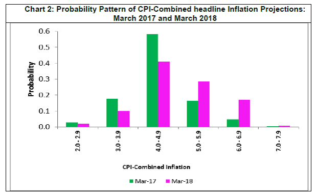 CPI headline inflation is expected to increase to 4.0 per cent in Q4:2016-17 and edge up gradually to 4.9 per cent in Q3:2017-18. CPI Core inflation is expected to remain marginally below 5.0 per cent till Q3:2017-18 (Table 7). -