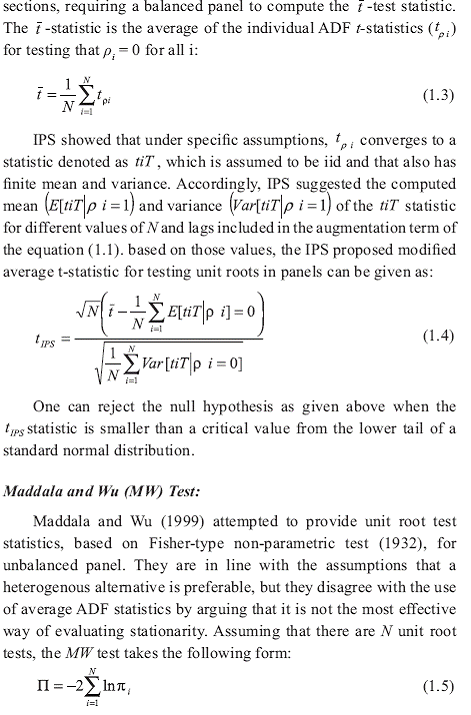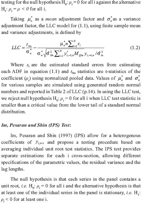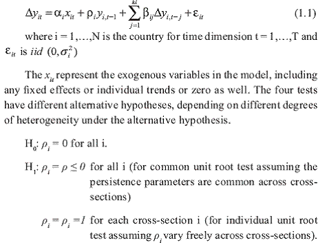 All panel unit root tests, viz. Im, Pesaran and Shin (1995, 2003), the Levin and Lin and Chu (2002) test and the Maddala and Wu (1999) tests are based on a Dickey-Fuller-type regression: