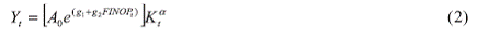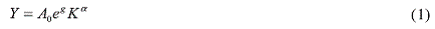 We have used standard neo-classical growth model where the output per capita (Y) is a function of capital per labour (K) in Cobb- Douglas form: