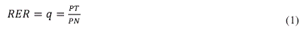 Where, PT is the world price for traded goods and PN is the price of non-traded ones. This definition is called internal real exchange rate and is appropriate for developing countries where exports are predominately primary products and law of one price holds. The law of one price entails that price of traded goods is equivalent across the countries in common currency. Edwards (1989) mentions that this definition provides a consistent index of the country’s tradable sector competitiveness and also influences resources allocation as an increase in q would cause a shift of resources away from the traded to the non traded sector. As per definition (1), the dynamics of the internal relative price of non tradable goods drives the movements in RER as law of one prices holds in case of traded goods and their prices amount equivalent to world prices, especially in emerging market and developing economies.