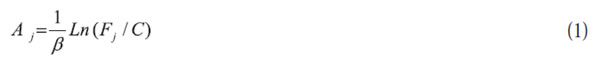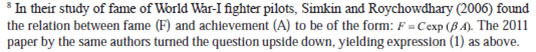 In order to eliminate (the unknown) β, it becomes useful to focus on relative achievement in equation 1, by scaling the achievement of economist j by the maximum achievement reached by any economist (Amax), yielding expression (2):