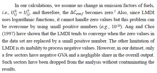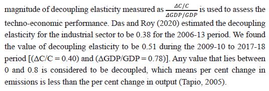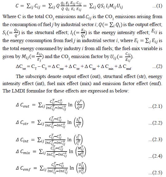 Shashi Kant, Madhuresh Kumar, Shahbaaz Khan and Somnath Sharma* Received on: March 30, 2022 Accepted on: June 22, 2022 This paper decomposes the total carbon dioxide (CO2) emissions in the manufacturing sector of India during the period 2009-10 to 2017-18 into factors, such as output growth, structural changes, energy intensity changes and fuel mix changes using the Logarithmic Mean Divisia Index (LMDI) method. It finds that while a reduction in energy intensity and structural changes in manufacturing activities have led to an overall reduction in CO2 emissions, growth in output and changing fuel mix have contributed to higher emissions. The dominance of coal and coal-powered electricity in fuel consumption remains the most significant cause of CO2 emissions in India, warranting a sustained policy thrust on renewable sources of energy for faster green transition. JEL Classification: Q41, Q54, O14, L60. Keywords: Decomposition, carbon emissions, CO2 emissions, energy intensity, climate change, LMDI. Introduction The manufacturing sector is one of the key drivers of India’s economic growth, contributing around 15 per cent to India’s Gross Value Added (GVA). It is also the second-largest contributor to carbon dioxide (CO2) emissions (25 per cent) after electricity generation (Biswas et al., 2019; Gupta et al., 2019). This sector is by nature energy-intensive resulting in large emissions of greenhouse gases and is also sensitive to technological change. These characteristics of the manufacturing sector may lead to changes in its CO2 emissions over time through changes in input requirements and improvements in energy efficiency. The annual Conference of Parties (COP) on Climate Change, popularly known as COP26, held in Glasgow from October 31 to November 13, 2021, called on all the stakeholder countries for a collective action towards a systematic reduction in greenhouse gases emissions. COP26 sought commitments from every country to cut CO2 emissions, with an end objective of becoming net-zero in a targeted timeframe. Such intended decoupling between economic growth and CO2 emissions is possible if significant steps are taken in the manufacturing sector towards the reduction of CO2 emissions. The first step towards this is understanding the major factors contributing to CO2 emissions in the manufacturing sector. In this paper, we decompose the increase in CO2 emissions from India’s manufacturing sector as a result of a rise in output levels, changes in the fuel mix, improvements in energy efficiency in the manufacturing processes and variations in the composition of the overall manufacturing output. As technologies improve over time, manufacturing units adopt new ways of production to save costs and increase efficiency. The overall compositional structure of the manufacturing industry also changes with time, altering the CO2 emissions from the manufacturing industry. Illustratively, if the composition of the manufacturing sector changes such that the share of industries emitting less CO2 increases, the overall CO2 emissions from the manufacturing sector may decline. In this paper, we also analyse the key patterns in fuel usage across various types of industries classified according to their sizes (micro, small, medium and large) to see if smaller industries produce the same amount of output with lesser emissions which may have wide implications for policy planning. The novelty of this paper lies in its use of granular plant-level fuel consumption data published as part of the Annual Survey of Industries (ASI), which has hitherto remained underutilised for research on green transition. We use the logarithmic mean divisia index (LMDI) decomposition technique that has been extensively used by researchers for the decomposition of CO2 emissions. We find that despite being carbon intensive in nature, the manufacturing sector is undergoing a faster green transition than the overall economy. Increasing output in the manufacturing sector is the biggest contributor to emissions. The contribution of the manufacturing sector to emissions is explained by the use of a more carbon-intensive fuel mix, but this effect is offset by energy efficiencies in manufacturing processes and a structural shift to cleaner industries. The rest of the paper is structured as follows. Section II reviews various studies that have used several decomposition techniques. Section III describes the LMDI methodology. Data processing is discussed in Section IV alongside some stylised facts using ASI data. Results of the decomposition analysis are discussed in Section V. Section VI concludes the paper. Section II Literature Review Energy identities provide the basis to establish a quantitative relationship between CO2 emissions and, their contributing factors. Globally, studies have mainly used two techniques to decompose the change in CO2 emissions over time – structural decomposition analysis (SDA) and index decomposition analysis (IDA). Of the two methods, SDA is more rigorous and exhaustive based on input-output tables. The SDA model has been widely used to distinguish the direct and indirect socio-economic effects from intermediate production and final consumption perspectives (Wang and Wang, 2015). The limiting factor in its use for CO2 emissions decomposition is the availability of input data for fuels of various types, which are clubbed together as one entity in many cases. On the other hand, index decomposition analysis (IDA) has been extensively used as an analytical framework by researchers to quantify the impact of change in output, structure, and energy intensity of various economic activities on energy use trends. Since the early 1990s, IDA has been extended to CO2 emissions by including two additional variables, fuel mix and emission coefficient effects. The IDA methods mainly include the Laspeyres and the Divisia index decomposition methods (Qu, 2020). It may be noted that the Laspeyres index decomposition do