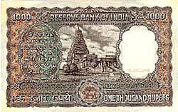 Rupees One Thousand - Tanjore Temple