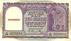Rupees Ten : Size 137 x 63 mm