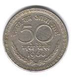 coinage of 10, 25 and 50 paise, was introduced in 1988 and of one rupee in
