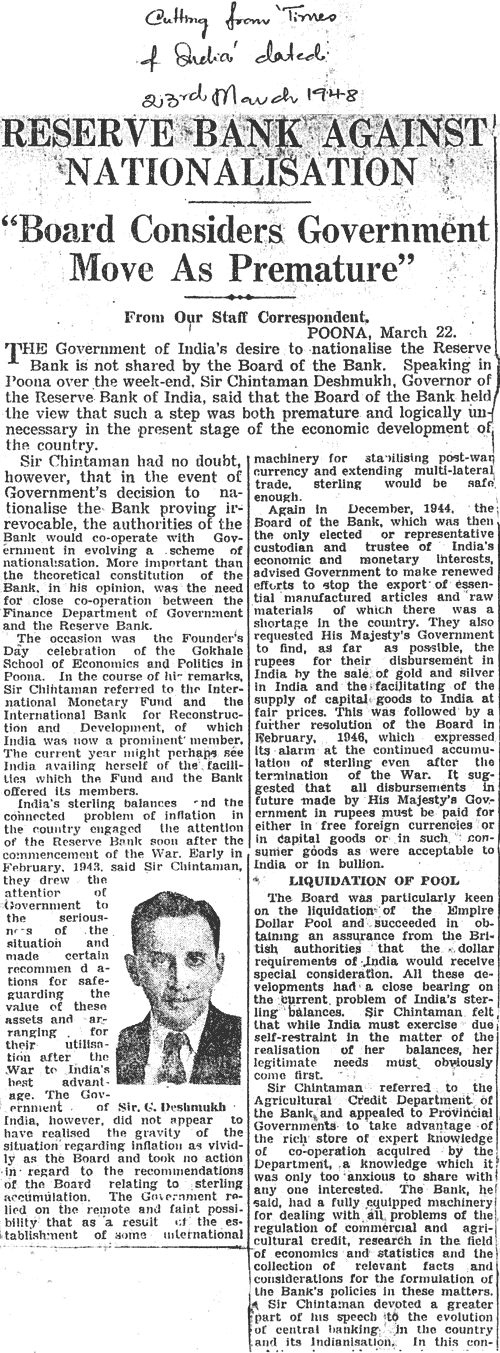 Governor CD Deshmukh, prior to nationalisation.