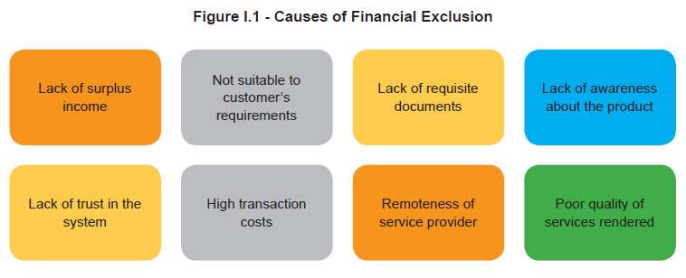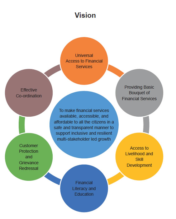 An approach paper to accelerate financial inclusion to promote economic wellbeing, prosperity and sustainable development The National Strategy for Financial Inclusion 2019-2024 sets forth the vision and key objectives of the financial inclusion policies in India to help expand and sustain the financial inclusion process at the national level through a broad convergence of action involving all the stakeholders in the financial sector. The strategy aims to provide access to formal financial services in an affordable manner, broadening & deepening financial inclusion and promoting financial literacy & consumer protection. I Introduction I.1 Financial inclusion is increasingly being recognized as a key driver of economic growth and poverty alleviation the world over. Access to formal finance can boost job creation, reduce vulnerability to economic shocks and increase investments in human capital. Without adequate access to formal financial services, individuals and firms need to rely on their own limited resources or rely on costly informal sources of finance to meet their financial needs and pursue growth opportunities. At a macro level, greater financial inclusion can support sustainable and inclusive socio-economic growth for all. I.2 There has been a growing evidence on how financial inclusion has a multiplier effect in boosting overall economic output, reducing poverty and income inequality at the national level. Financial inclusion of women is particularly important for gender equality and women’s economic empowerment. With greater control over their financial lives, women can help themselves and their families to come out of poverty; reduce their risk of falling into poverty; eliminate their exploitation from the informal sector; and increase their ability to fully engage in measurable and productive economic activities. An inclusive financial system supports stability, integrity and equitable growth. Therefore, financial exclusion because of several barriers like physical, socio-cultural and psychological, warrants attention from the policy makers. Some of the key reasons resulting in involuntary exclusion are: Financial Inclusion and United Nations Sustainable Development Goals I.3 It is also noteworthy to state that, seven1 of the seventeen United Nations Sustainable Development Goals (SDG) of 2030 view financial inclusion as a key enabler for achieving sustainable development worldwide by improving the quality of lives of poor and marginalized sections of the society. (Home- Sustainable Development Goals, 2018) Defining Financial Inclusion in the Indian Context I.4 Financial inclusion has been defined as “the process of ensuring access to financial services, timely and adequate credit for vulnerable groups such as weaker sections and low-income groups at an affordable cost”. (Committee on Financial Inclusion - Chairman: Dr C Rangarajan, RBI, 2008). The Committee on Medium-Term Path to Financial Inclusion (Chairman: Shri Deepak Mohanty, RBI, 2015) has set the vision for financial inclusion as, “convenient access to a basket of basic formal financial products and services that should include savings, remittance, credit, government-supported insurance and pension products to small and marginal farmers and low-income households at reasonable cost with adequate protection progressively supplemented by social cash transfers, besides increasing the access of small and marginal enterprises to formal finance with a greater reliance on technology to cut costs and improve service delivery, ….” Financial Inclusion Strategy - Rationale I.5 While a lot of efforts have been undertaken to increase financial inclusion in the country (See Chapter III- Status of Financial Inclusion in India) a lot of steps are further needed to ensure adequate access to financial services and usage of these services by various segments of under-served and un-served population in India, so far. Anchored in the country’s development priorities, the NSFI 2019-2024 seeks to address the inherent barriers of access to a gamut of financial products and services. An inclusive financial system (ably supported through sound financial inclusion policies, focus on financial education and customer protection) is not only pro-growth but also pro-poor with the potential to reduce income inequality and poverty, promote social cohesion and shared economic development. Financial exclusion, on the other hand, leaves the disadvantaged and low- income segments of society with no choice other than informal options, making them vulnerable to financial distress, debt, and poverty.  I.6 The National Strategy for Financial Inclusion for India 2019-2024 has been prepared by RBI under the aegis of the Financial Inclusion Advisory Committee and is based on the inputs and suggestions from Government of India, other Financial Sector Regulators viz., Securities Exchange Board of India (SEBI), Insurance Regulatory and Development Authority of India (IRDAI) and Pension Fund Regulatory and Development Authority of India (PFRDA). This document also reflects various outcomes from wide-ranging consultation held with a range of stakeholders and market players, including National Bank for Agriculture and Rural Development (NABARD), National Payments Corporation of India (NPCI), Commercial Banks and Corporate Business Correspondents etc. It includes an analysis of the status and constraints in financial inclusion in India, specific financial inclusion goals, strategy to reach the goals and the mechanism to measure progress. II Cross Country Analysis and Lessons II.1 With increased recognition globally and United Nations Sustainable Development Goals (SDGs) emphasising financial inclusion as a key enabler for achieving sustainable development worldwide, countries across the globe are developing suitable strategies and policies to increase access and usage of formal financial services. Achieving Universal Financial Access by 2020 (UFA 2020) ha