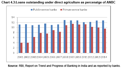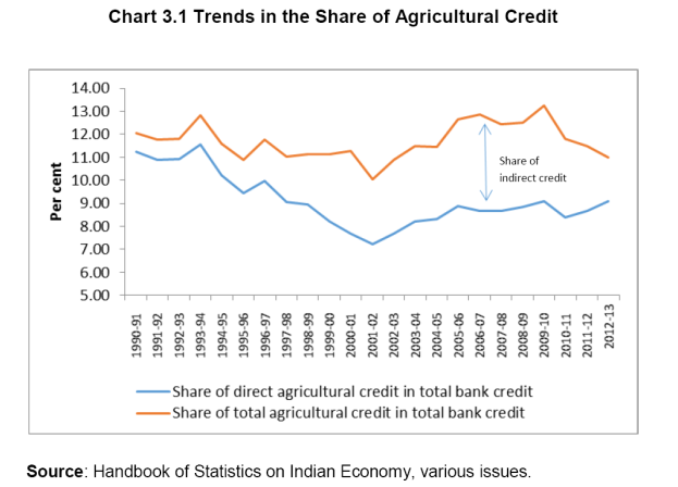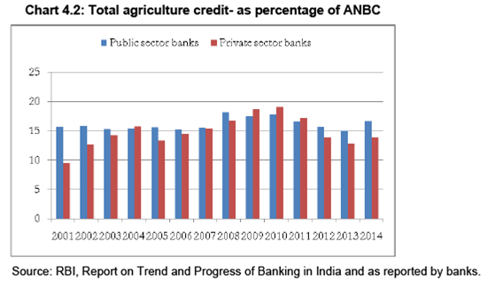 Chapter 4 Priority Sector Lending – Targets and Definitions 4.1 This chapter begins by looking at the present targets and definitions for Priority Sector Lending (PSL) and then reviews the achievements by banks in the recent period and while examining the sectors of national priority, suggests revisions in the approach, definitions and targets of PSL. I. Priority Sector 4.2 As per the extant guidelines, domestic banks are required to meet a target of 40 per cent of their Adjusted Net Bank Credit (ANBC) or Credit Equivalent of Off-Balance Sheet Exposure (CEOBE) of the preceding March 31st, whichever is higher, for priority sector lending. Foreign banks with 20 and above branches have also been brought on par with domestic banks w.e.f. July 20, 2012 and these banks have to achieve the targets over a period of five years. The prescription for foreign banks with less than 20 branches is 32 per cent of ANBC or Credit Equivalent of Off-Balance Sheet Exposure (CEOBE) of the preceding March 31st, whichever is higher. 4.3 At the aggregate level, domestic banks have by and large achieved the overall target of 40 per cent in the recent years (Appendix 1.1 and Chart 4.1). Between 2001 and 2014, except for two years, the shortfall has been less than 1 percentage point. Further, the number of years when banks exceeded the target outnumbered the number of years having a shortfall. Notwithstanding the low magnitude of default, there was a discernible decline in the percentage of PSL after 2008, which was somewhat reversed only in 2014. Foreign banks achieved more than the target of 32 per cent during this period. 4.4 Continuance with directed lending programme (DLP) is a necessity in the Indian context. In the absence of such prescriptions, lending to the important sectors like agriculture and Micro and Small Enterprise (MSEs) would not have taken place to the desired extent. In view of the continued need for making credit available to various priority sectors on grounds of growth and equity and the fact that banks have been hovering around the set target in lending to the priority sector leads to the conclusion that the target should be kept intact. The feedback received from bankers underscore the need to continue with a target-based approach to ensure the flow of credit to priority sectors. The Working Group, therefore, recommends that the target for lending to the redefined priority sector may be retained uniformly at 40 per cent of ANBC or Credit Equivalent of Off-Balance Sheet Exposure (CEOBE), whichever is higher, for all scheduled commercial banks.  Foreign Banks with more than 20 branches were given the same targets as domestic banks in 2012 giving them time up to March, 2018 to comply. They were also advised to submit the action plans for achieving these targets. Remaining Foreign Banks (with less than 20 branches) continued to have 32 per cent priority sector lending target. Admittedly, there are certain constraints for foreign banks, like their limited presence owing to branch licensing restrictions and lack of experience in lending to certain sectors. However, it is felt that given the enhanced scope and alternative avenues made available for achievement of priority sector targets, they will also be able to achieve the targets similar to those for domestic banks. In Chapter 5, the Working Group has made recommendations for the introduction of Priority Sector Lending Certificates (PSLCs). These instruments would provide a mechanism for banks with lesser number of branches to achieve the prescribed targets and sub-targets. The Working Group, therefore, recommends that all foreign banks (irrespective of number of braches they have) may be brought on par with domestic banks and the same target/ sub-targets may be made applicable to them. The overall target of 40 percent and sub-targets, as mentioned in the following paragraphs, may be made applicable to all the foreign banks. Foreign banks with 20 and above branches may be given time up to March 2018 and other foreign banks may be given time up to March 2020 to comply with the targets/sub-targets as per the action plans submitted by them and approved by the Reserve Bank. II. Agriculture 4.5 Agriculture credit has been considered eligible for priority sector lending for over four decades. Within the priority sector, a sub-target for the direct financing of agriculture and allied activities was set at 15 per cent of net bank credit to be achieved by 1985, which was subsequently raised to 16 per cent by March 1987, 17 per cent by March 1989 and 18 per cent by March 1990. The sub-target of 18 per cent was further bifurcated in 1993 to a minimum of 13.5 per cent for direct loans and a maximum of 4.5 per cent for indirect loans. Indirect lending above 4.5 per cent of ANBC was not taken into account for computation of achievement under the 18 per cent target, but was considered as overall priority sector lending. In April 2001, private sector banks were advised to achieve the target of 18 per cent of net bank credit for lending to agriculture within a time period of two years. Agriculture targets were made applicable to foreign banks with 20 and above branches from April 2013 and were given time till March 2018 to achieve the same. II.1 Trends in Agriculture Credit The Working Group looked at various trends in agricultural credit before making recommendations for this sector. 4.6 The performance of domestic scheduled banks in terms of achievement of agriculture targets was less satisfactory. The shortfall from the targeted level (of 18 per cent) was more than 2 percentage points every year between 2001 and 2014 for all SCBs except for three years between 2008 and 2010. On an average, the percentage of credit to agriculture under PSL was about 16 per cent in the years after 2001. The achievement of agricultural targets was relatively better for public sector banks than private sector banks (Appendix 1.2 and Chart 4.2). II.2 Direct vs. Indirect Agricu