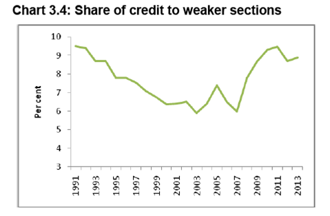 Dr. Pallavi Chavan, Assistant Adviser, DEPR 1.5 The progress of the Working Group was monitored by Executive Directors Shri B Mahapatra (since retired on August 31, 2014) and Dr. Deepali Pant Joshi. 1.6 The Report is structured as follows: Chapter 2 discusses the approach of the Working Group and delineates the broad contours and framework within which the Group shaped its recommendations. Chapter 3 analyses the impact of priority sector lending on inclusion/serving the vulnerable/neglected sectors of the economy. Chapter 4 details the recommended future approach for priority sector lending including targets/sub-targets keeping in mind national priorities as well as non-achievement of targets. Chapter 5 discusses the concept of Priority Sector Lending Certificates (PSLCs) as an alternative and efficient method of achievement of targets. Chapter 2 Approach of the Working Group 2.1 The Priority Sector Lending (PSL) programme of India is one among the longest serving directed lending programmes in the world. The origin of the PSL programme can be traced back to the Credit Policy for 1967-68, when public sector banks were advised to increase their involvement in financing of certain sectors identified as priority sectors viz., agriculture and small-scale industries in line with the national economic policy. Priority sector lending in its present form was introduced in 1980, when it was also made applicable to private sector banks and a sub-target was stipulated for lending to the “weaker” sections of the society within the priority sector. Over time, there have been changes in overall definition of PSL as newer sectors were added to the list with an attempt to realign PSL with the changing economic realities. There were also attempts to redefine the contours of many of the identified sectors. 2.2 The Committee that in many ways offered the blue print for economic reforms in India in the early 1990s, namely the Committee on Financial Sector Reforms of 1991 [Chairman: Shri M. Narasimham (popularly known as Narasimham Committee I)] had recommended reduction followed by phasing out of PSL requirements. Notwithstanding this recommendation, the PSL dispensation continued due to various economic and social considerations, as noted in the Committee on Banking Sector Reforms of 1998 [Chairman: Shri M Narasimham (Narasimham Committee II)]. However, the recommendation made by Narasimham Committee I and later upheld by Narasimhmam Committee II, of having a focus on various employment generating sectors as part of PSL has influenced the PSL policy in the later years. The Report of the Internal Working Group on Priority Sector Lending (2005) too emphasised the need to include those sectors as part of PSL that, inter alia, had a bearing on employment generation in the economy. 2.3 The Committee to Re-examine the Existing Classification and Suggest Revised Guidelines with regard to Priority Sector Lending Classification and Related Issues (Chairman: Shri M. V. Nair) in 2012 recommended several changes in the definition and targets under the PSL policy. The underlying emphasis of the Committee on employment generating sectors, however, could not be missed. 2.4 The insights offered by many of these committees along with the deliberations with other stakeholders including banks, NABARD and other individual experts have been useful inputs for the Working Group while examining the PSL policy. Further, the Working Group has also relied on Plan and Union Budget documents in order to identify the various sectors of national priority and understand their credit needs. The Group has attempted an empirical assessment of the impact of sectoral credit on output to determine the efficacy of the PSL policy. It has also designed a framework for a periodic reset of the agricultural targets under PSL. Finally, banks’ achievements under the PSL programme in recent decades have also been a guiding factor for the Group while recommending revisions in the overall and sectoral targets. 2.5 While examining the broad superstructure of the PSL policy, the approach of the Working Group has been to give emphasis on sectors that (a) have greater potential for employment generation, (b) address the considerations of social and economic equity, and (c) create a conducive infrastructure for improving the absorptive capacity of credit. Accordingly, while the existing sectors of agriculture and allied activities, MSEs, exports and socio-economically weaker sections have been considered for continuation by the Working Group, several newer sectors/segments, including agricultural and social infrastructure, medium enterprises, and renewable energy have also been recommended for addition to the existing sectors. The Working Group has given emphasis on a targeted lending for small and marginal farmers and micro enterprises within the PSL policy. 2.6 One of the outcomes of the Group’s interactions with banks was the unequivocal need for targets to ensure the flow to credit to priority sectors. Coupled with the need for targets, however, the Group has also laid emphasis on improving the efficiency of achievements of these targets. The process by which the mandates are implemented has been revisited to emphasize on efficiency and better compliance. Towards this end, the Group has examined the possibility of introducing the Priority Sector Lending Certificates (PSLCs) to allow a more efficient implementation of the priority sector lending mandate. Accordingly, the targets set may be viewed as floors rather than ceilings to ensure that banks are incentivised to lend more to priority sectors. 2.7 Finally, apart from revisiting the sectors and targets, the Working Group has recommended bringing in uniformity in priority sector lending requirements for all banks - domestic and foreign - in the interest of equitable treatment, and given the magnitude of need to provide credit to underserved segments. Accordingly, domestic and foreign banks irresp